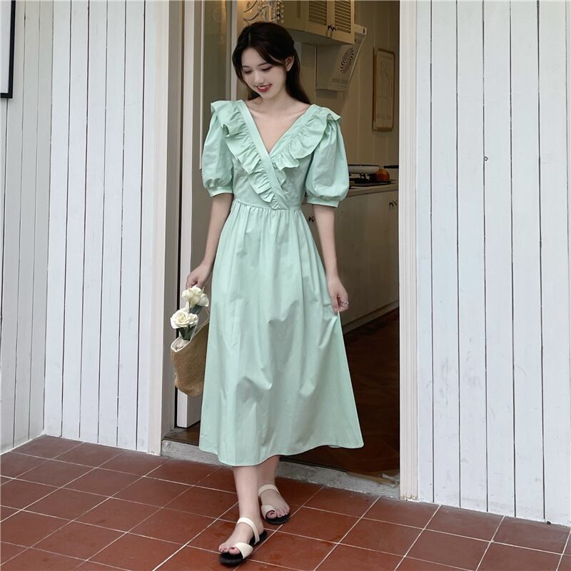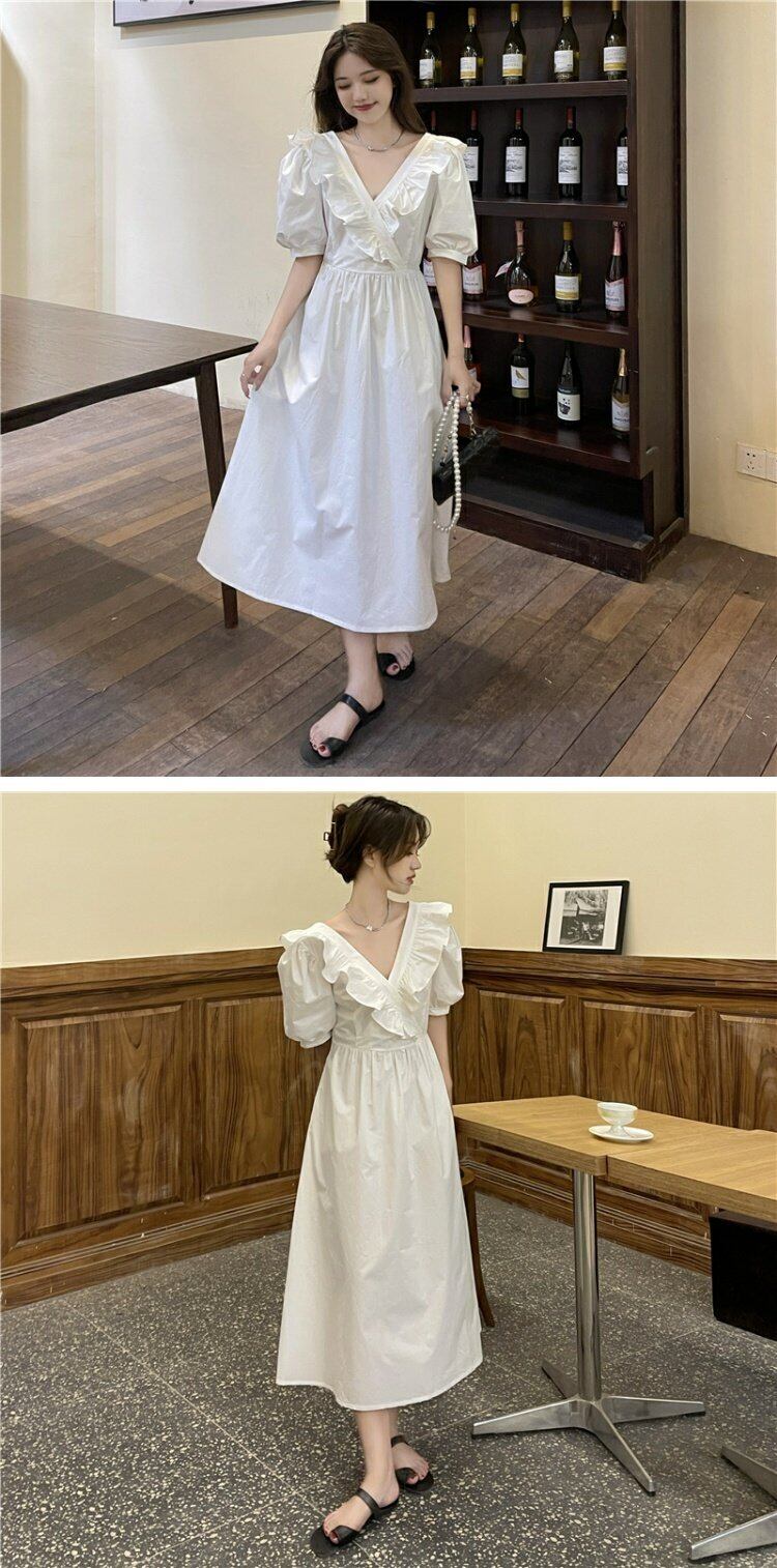ホワイトワンピースレディース夏服バックレスVネックスリーブロングスカート 夏物 コーデ marchs6713737570118