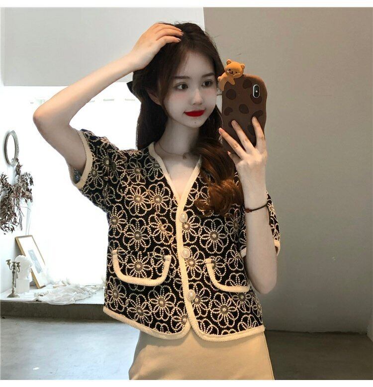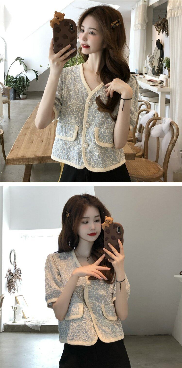 ショートジャケット レディース夏服半袖スリーブスタンダード薄手カーディガントップス レッド レトロ ハーフスリーブ 刺繍 夏物 コーデ marchs6756531095742