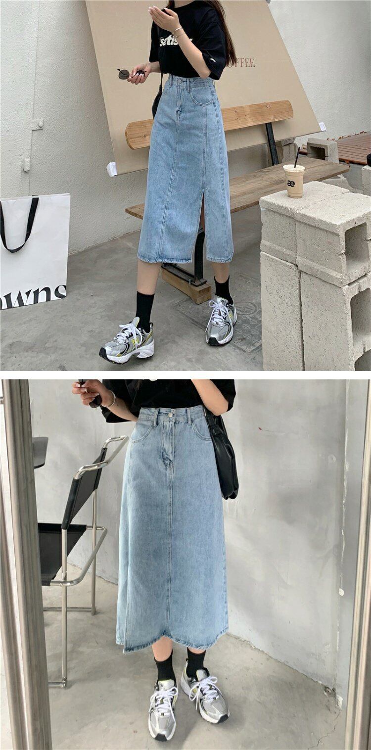 スカート レディーススプリング夏服薄手ハイウェストロングAライン 春物 夏物 ウエスト ミドル丈 コーデ marchs6789479583020