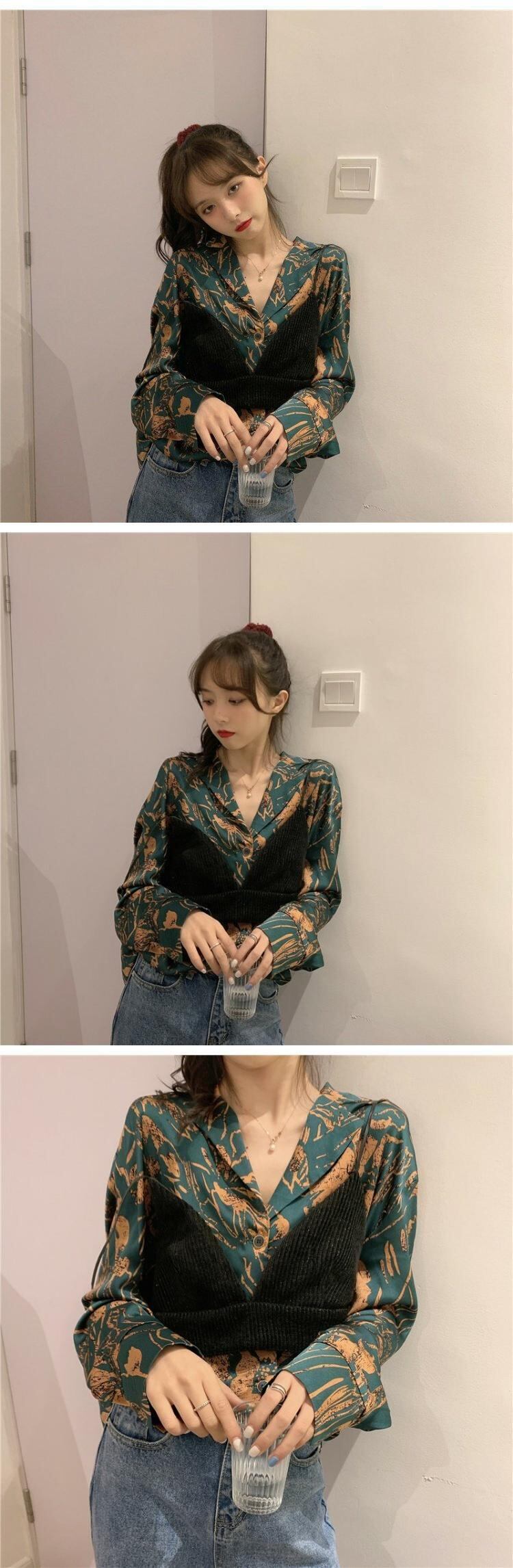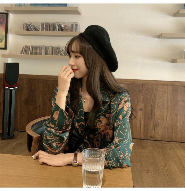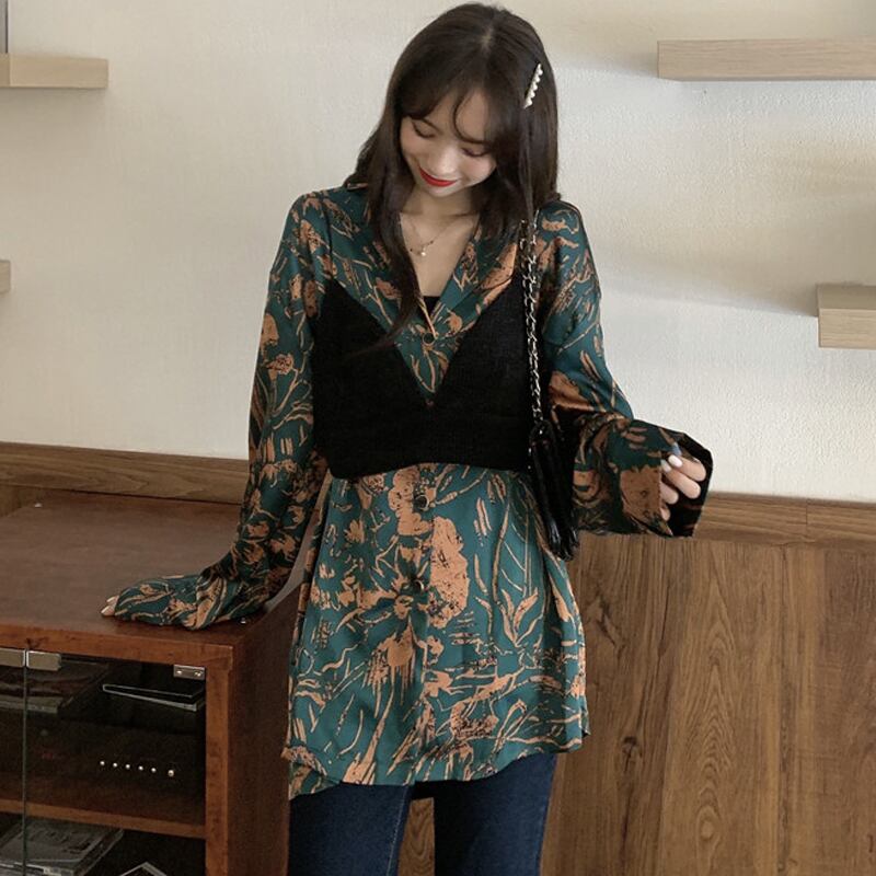 スプリングスタイルレディーススタンダードプリントシャツ セット レトロ 春物 ミドル丈 コーデ marchs6797358423505