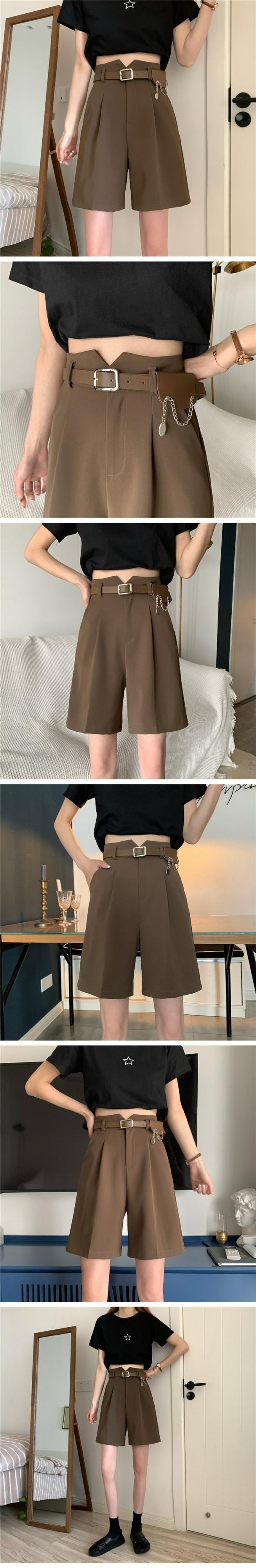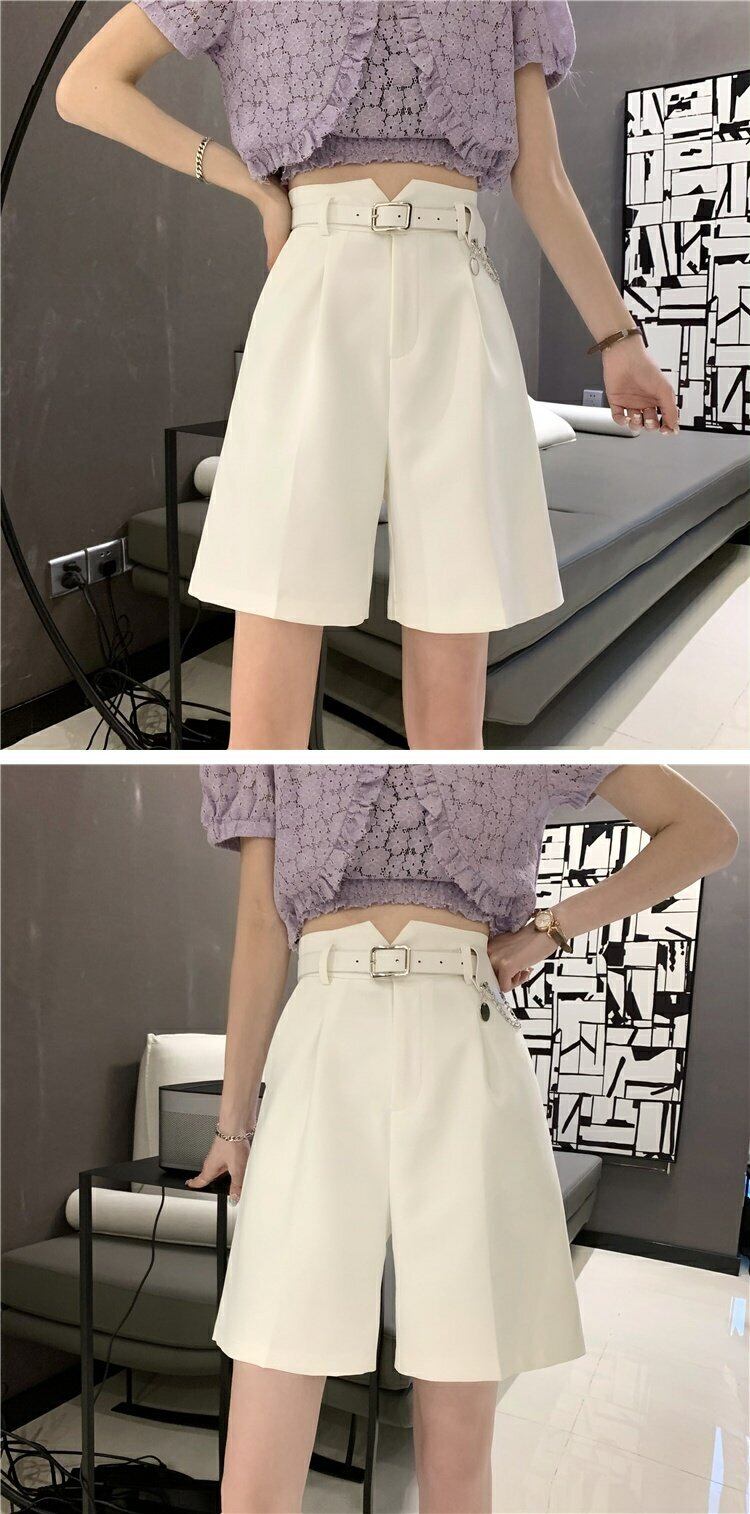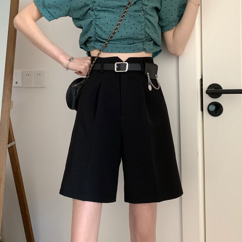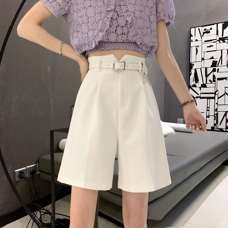 ルーズカジュアルパンツ レディース夏服韓国ファッションハイウェストウェストワイドレッグショーツ 夏物 ワイドパンツ スタイル ウエスト コーデ marchs672514953289