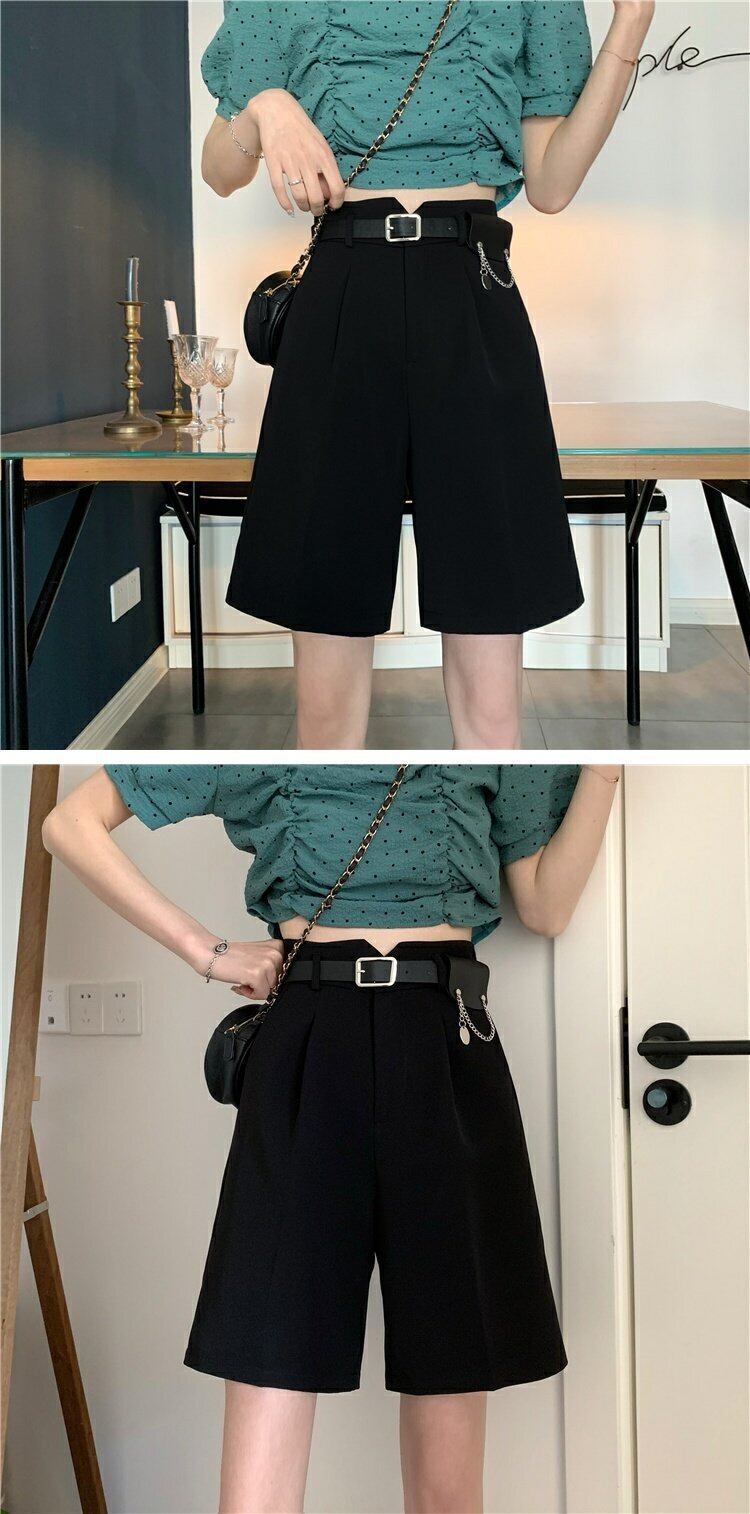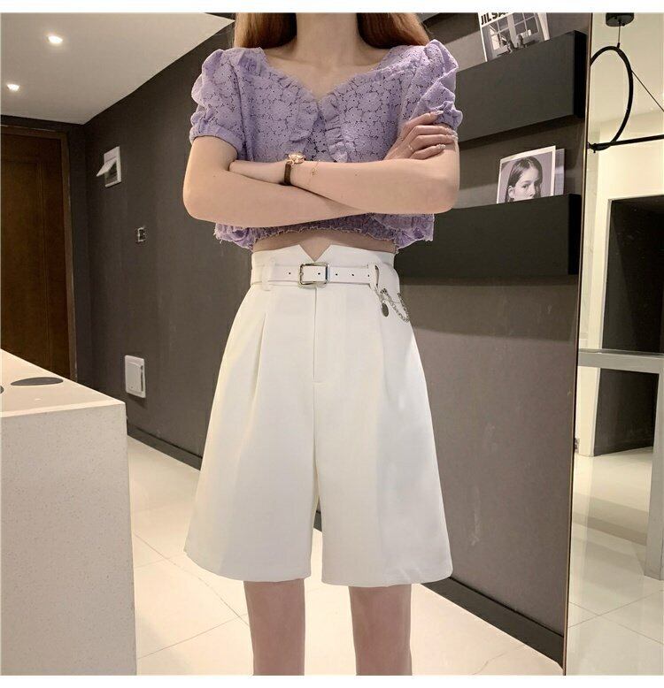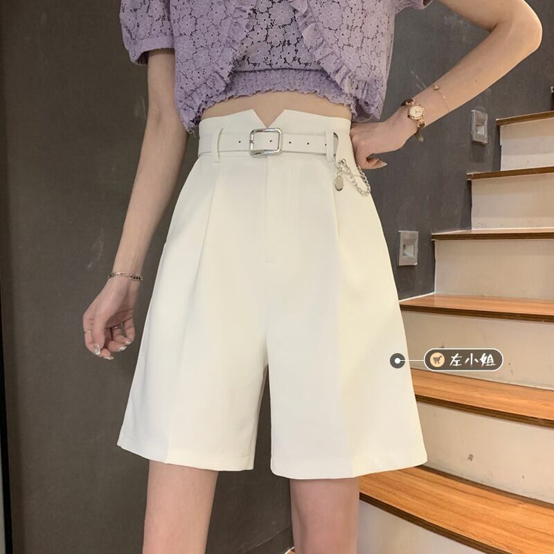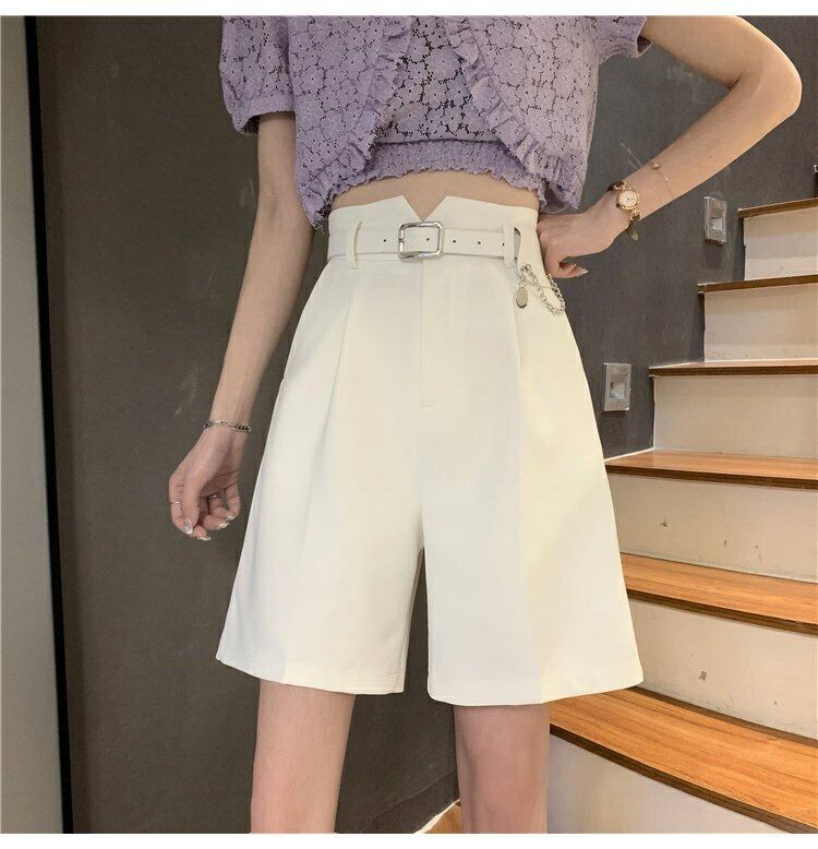 ルーズカジュアルパンツ レディース夏服韓国ファッションハイウェストウェストワイドレッグショーツ 夏物 ワイドパンツ スタイル ウエスト コーデ marchs672514953289