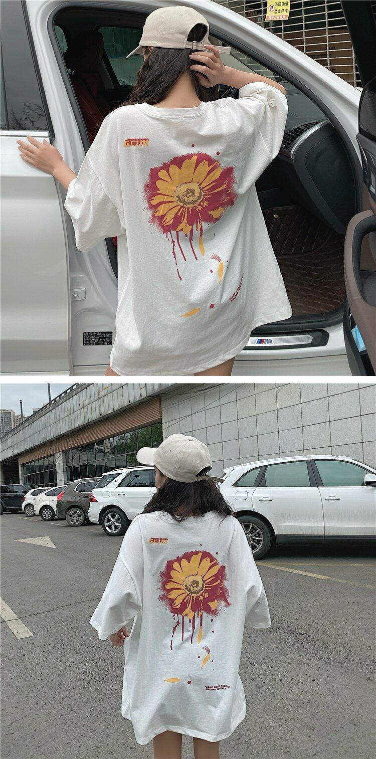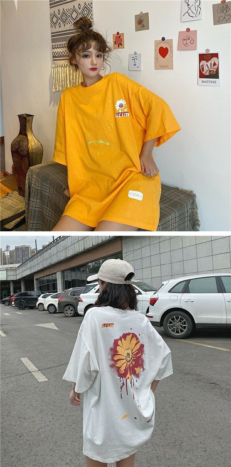 夏服韓国ファッショントレンドルーズトップス Tシャツレディース 大きめサイズ 夏物 ボーイズ スタイル ミドル丈 コーデ marchs673678965632