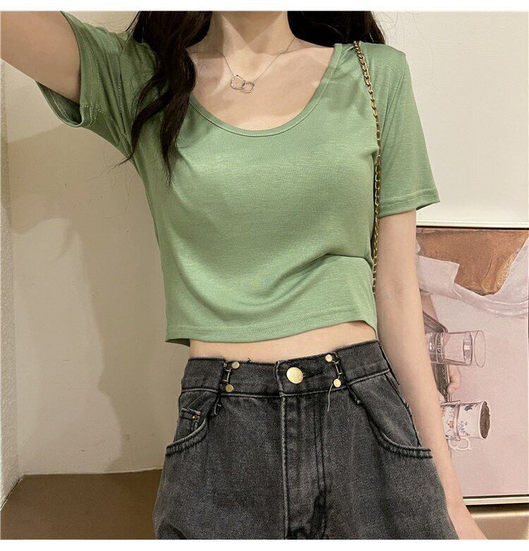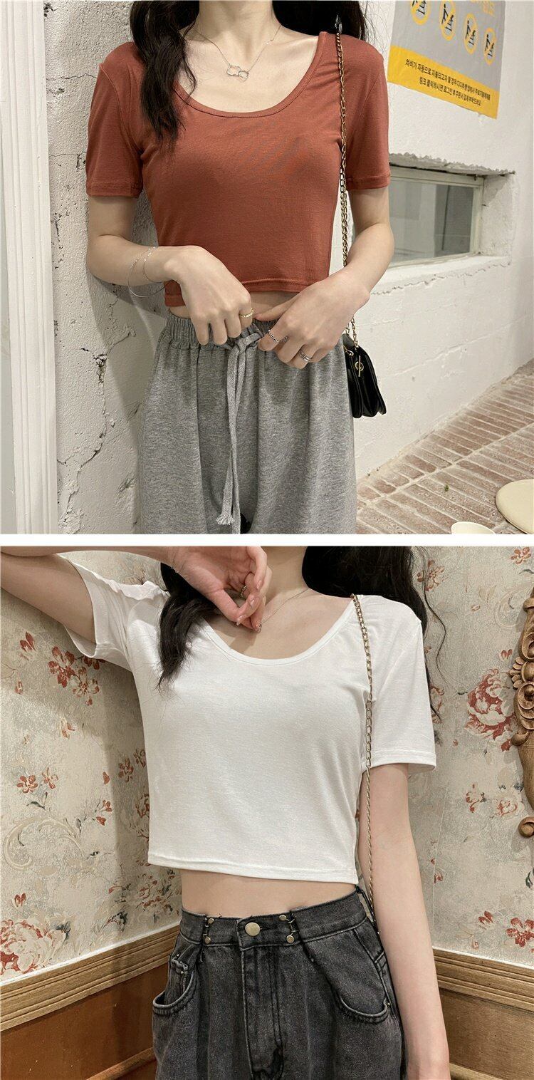 ブラックショートTシャツシャツ レディース夏服韓国ファッションゆったりソリッド カラートップス 夏物 ソリッドカラー スタイル コーデ marchs6786026016583