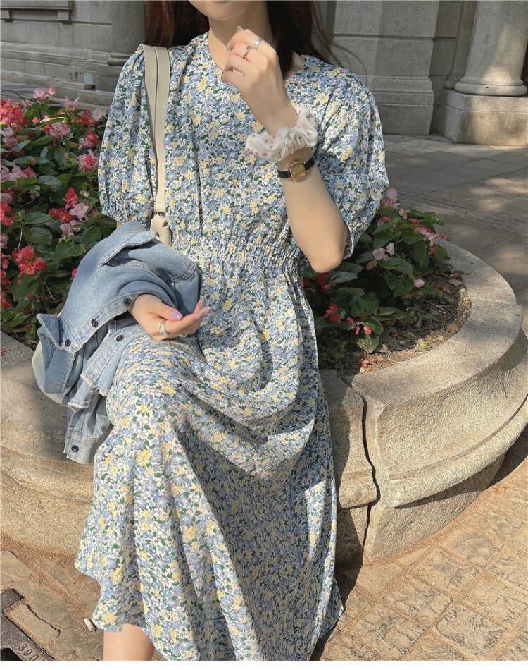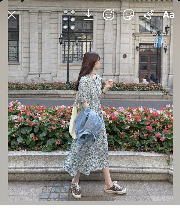 スタイルウェストフローラルスカート 夏服韓国ファッションプリーツミニ ワンピースワンピースレディース 夏物 花柄 ウエスト コーデ marchs679969909683