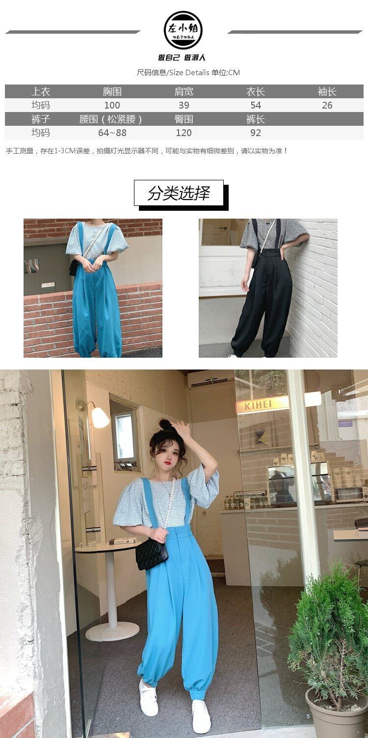 色:ブルーフローラルトップ,ブラックフローラルトップ,青いオーバーオール,黒いオーバーオール