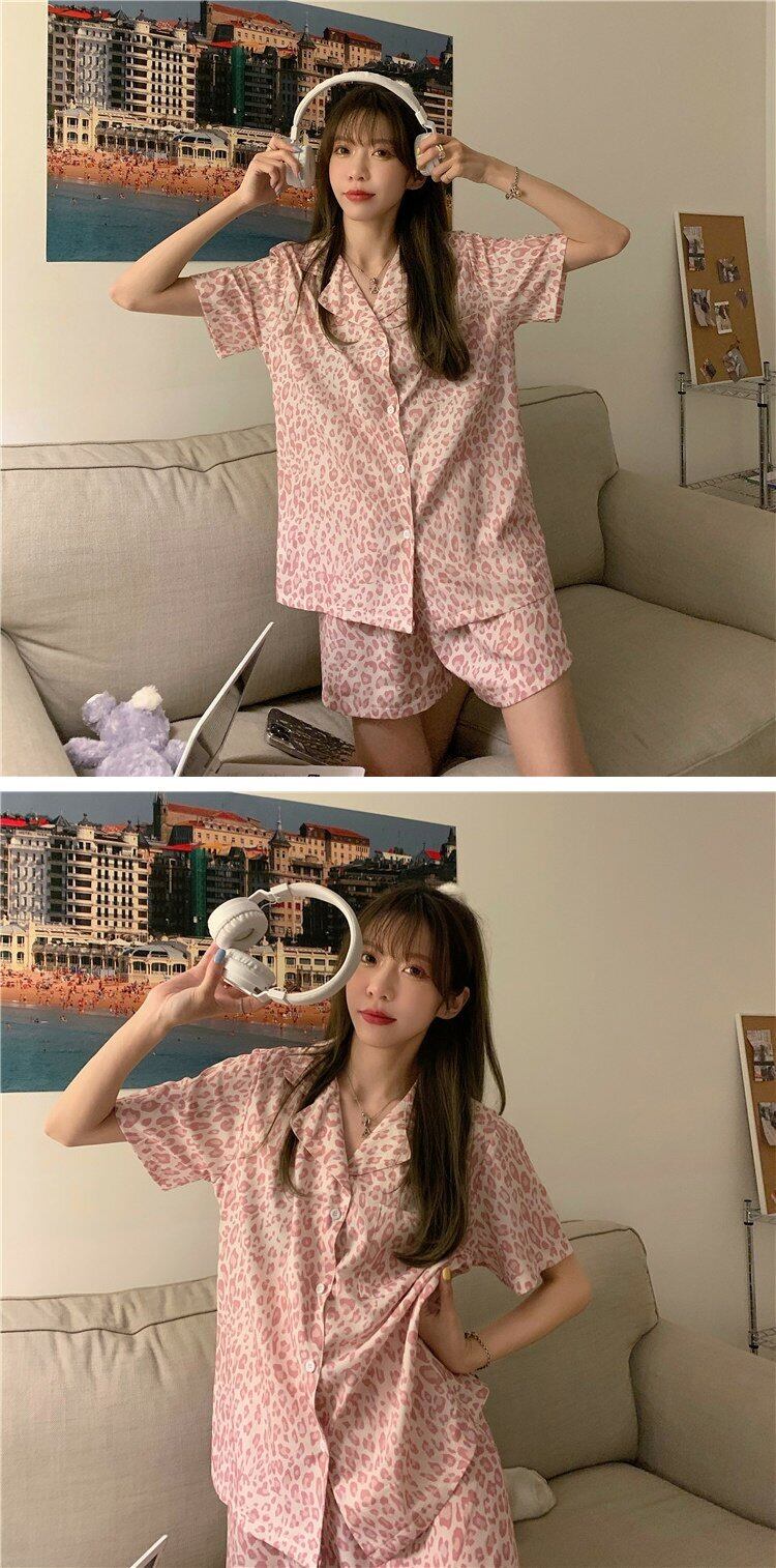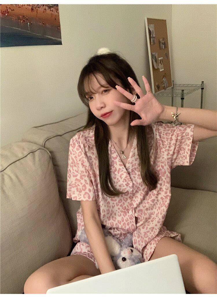 夏服レディース薄手レオパードプリント柄 ピンク 大人ガーリー スウィート キュート カジュアル 夏物 シルク コーデ marchs6762832391608