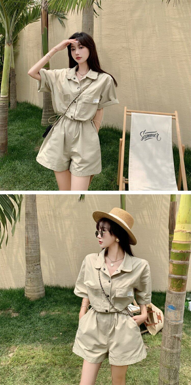 夏服スタンダードスタイルルーズウェストショーツ カジュアルジャンプスーツ オールインワン レトロ 夏物 ウエスト コーデ marchs6733422987403