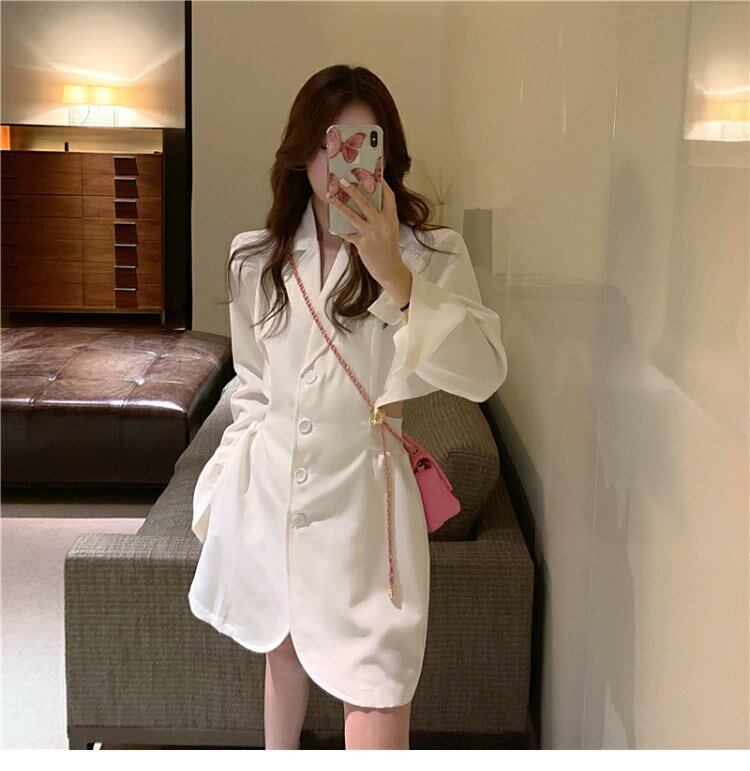ワンピースレディーススプリングスタンダード薄手Vネックブラックスカート レトロ 春物 ウエスト コーデ marchs6777588541713