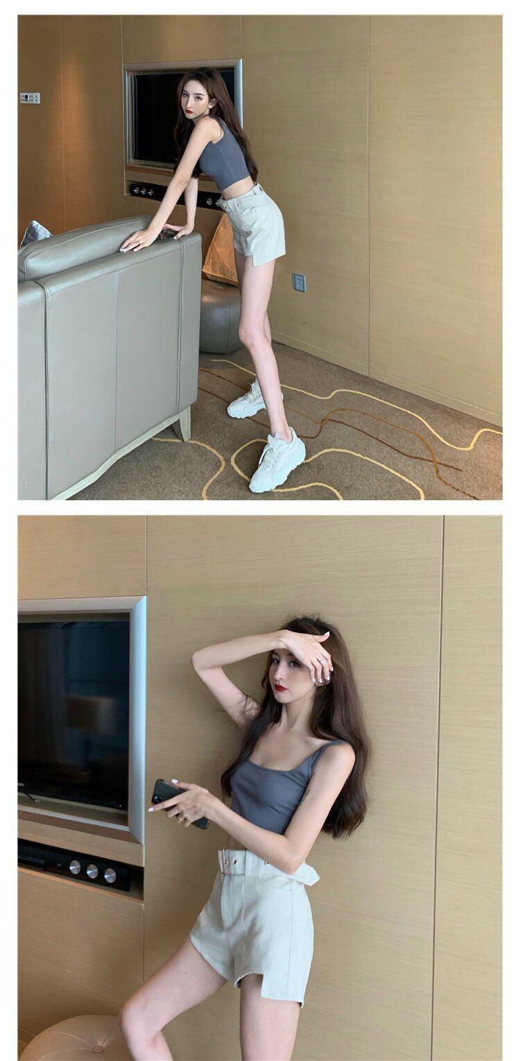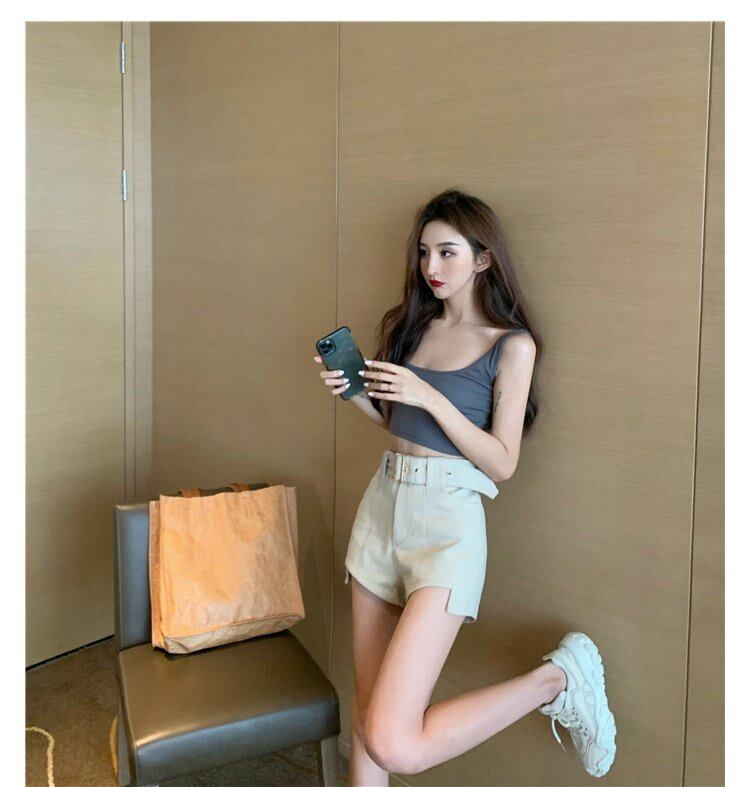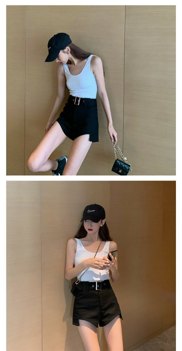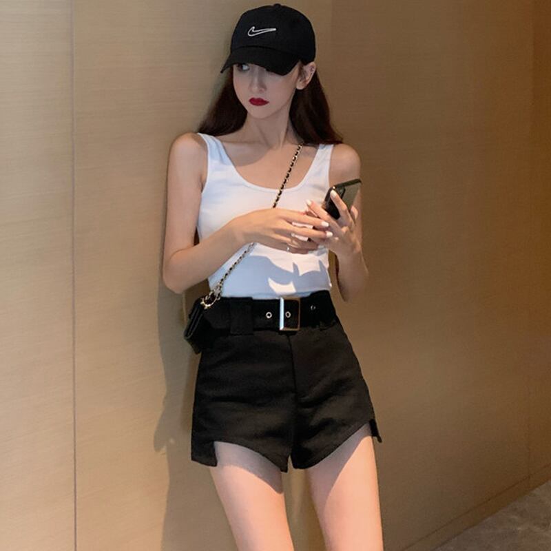 夏服ブラック ハイウェスト 夏物 ショーツ ウエスト コーデ marchs6763871043990