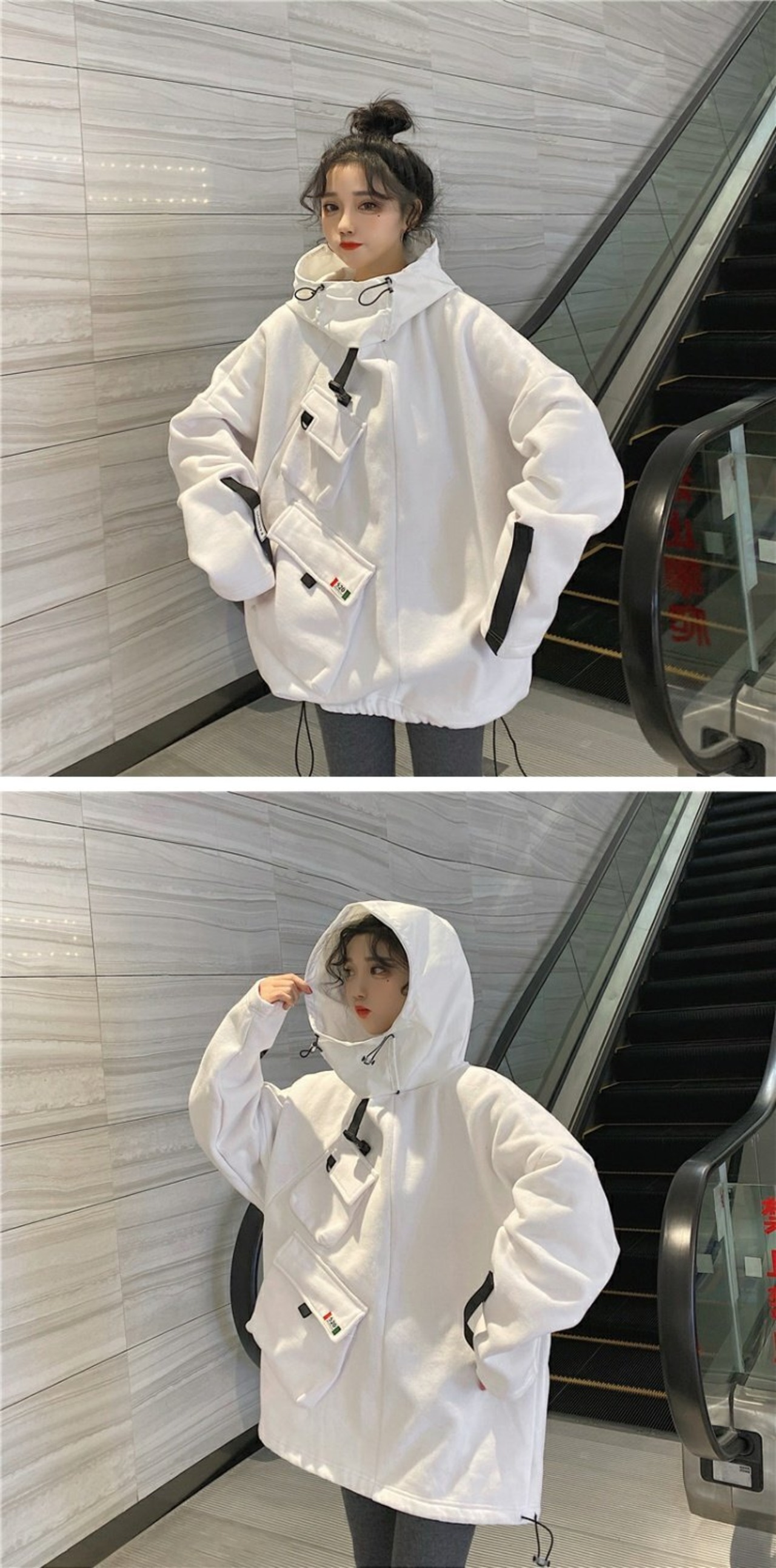厚みセーター レディーススプリング韓国ファッションフードルーズジャケット ストリート 春物 コーデ marchs6731050236385
