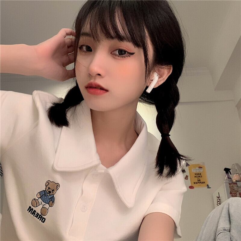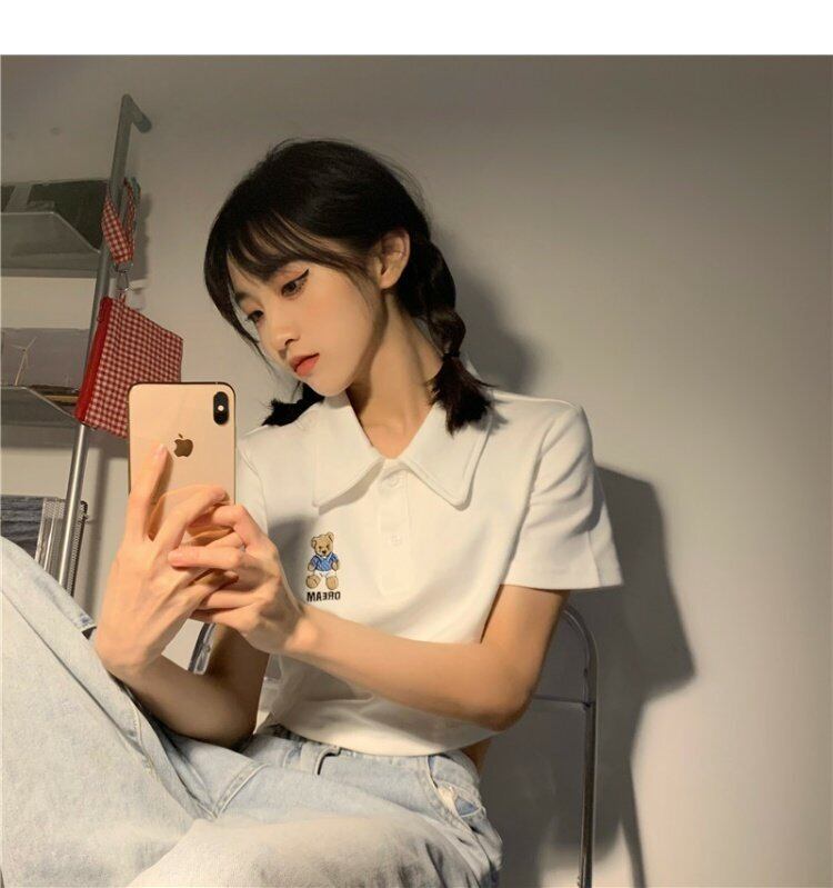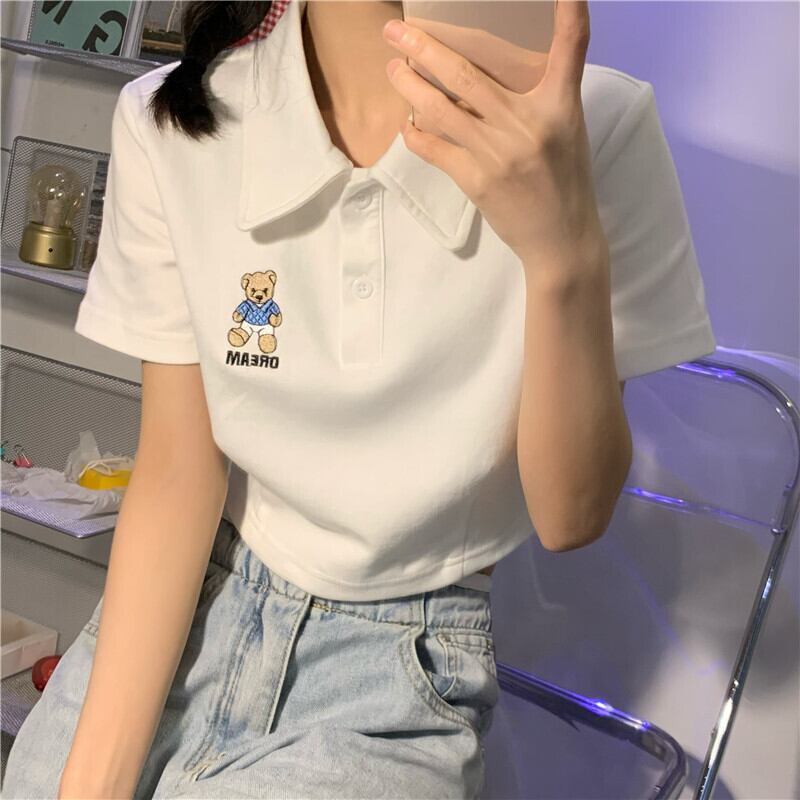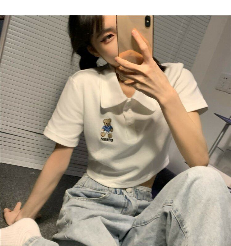 カラー刺繍ショートTシャツレディース夏服薄手ハイウェストトップス 夏物 ウエスト コーデ marchs6778631345772