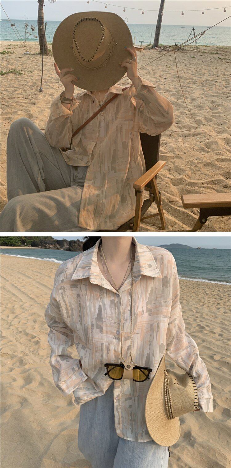 シャツ スプリング夏服スタンダード薄手シフォンスリーブトップス ジャケット レトロ 春物 夏物 コーデ marchs6715522622414