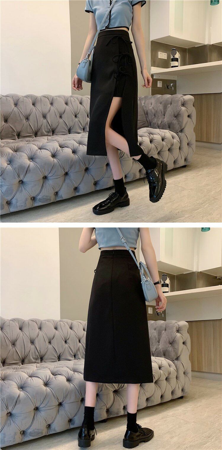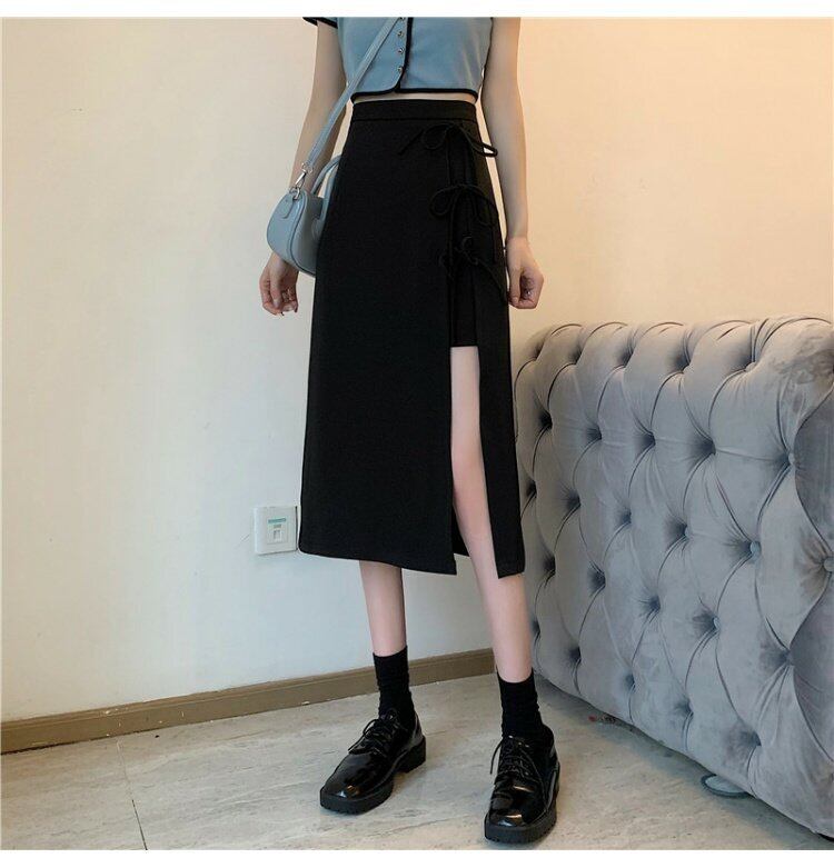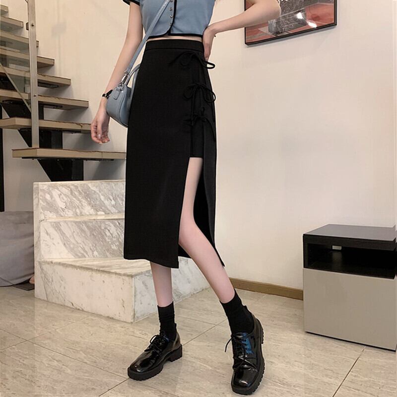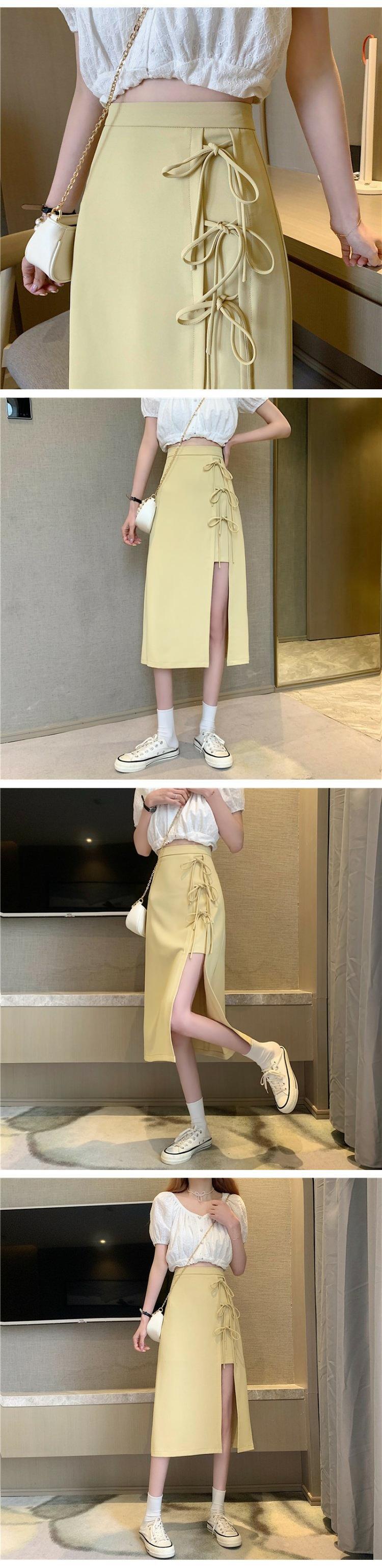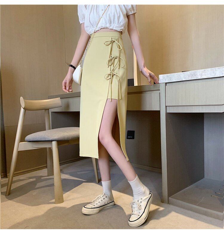 ブラックスカート レディース夏服ハイウェストウェストイエロー 夏物 ウエスト ミドル丈 コーデ marchs6727384314396