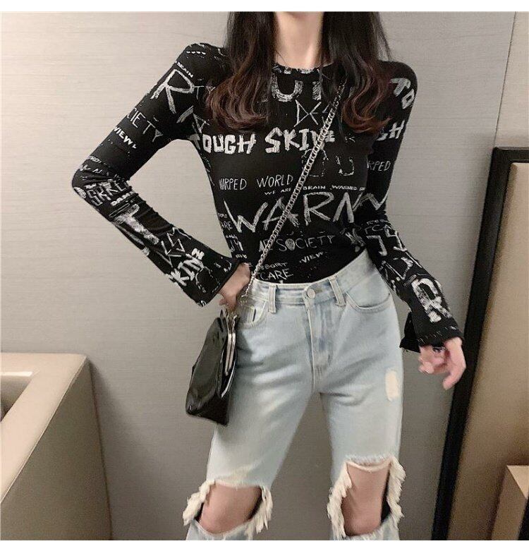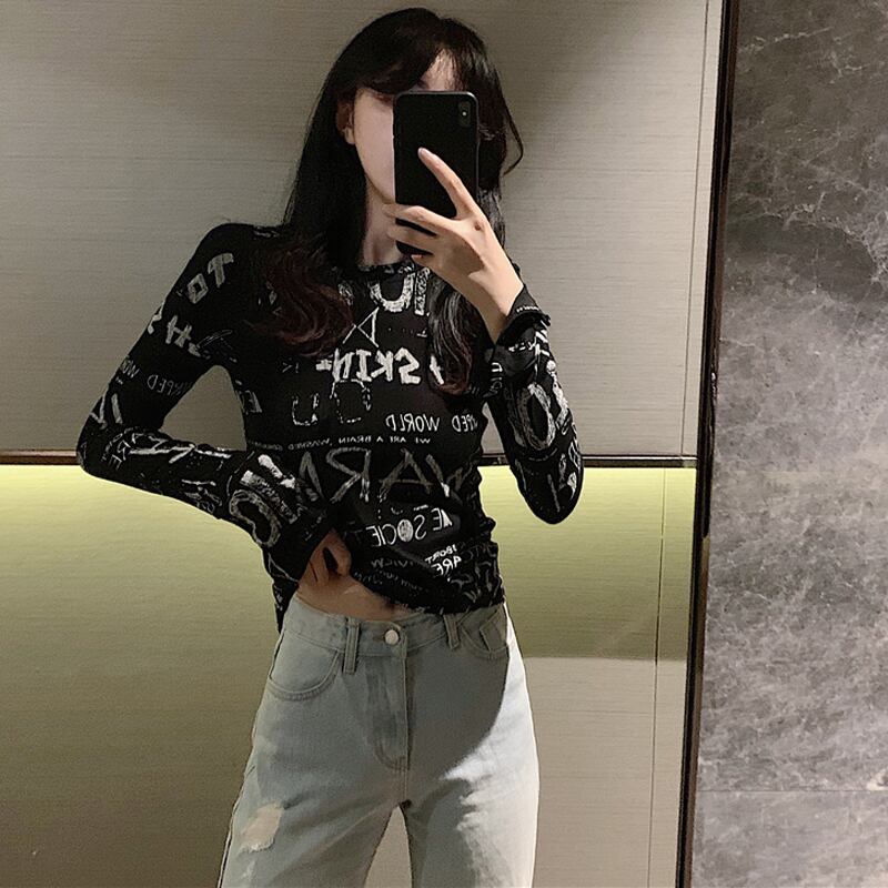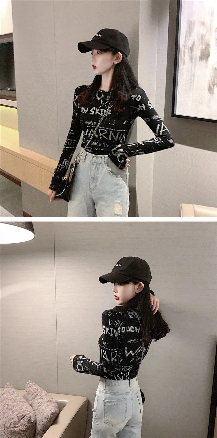 スプリングスタイルプリントスリムシャツ ゆったりTシャツレディーストレンド ロング 春物 長袖 コーデ marchs6740286173868
