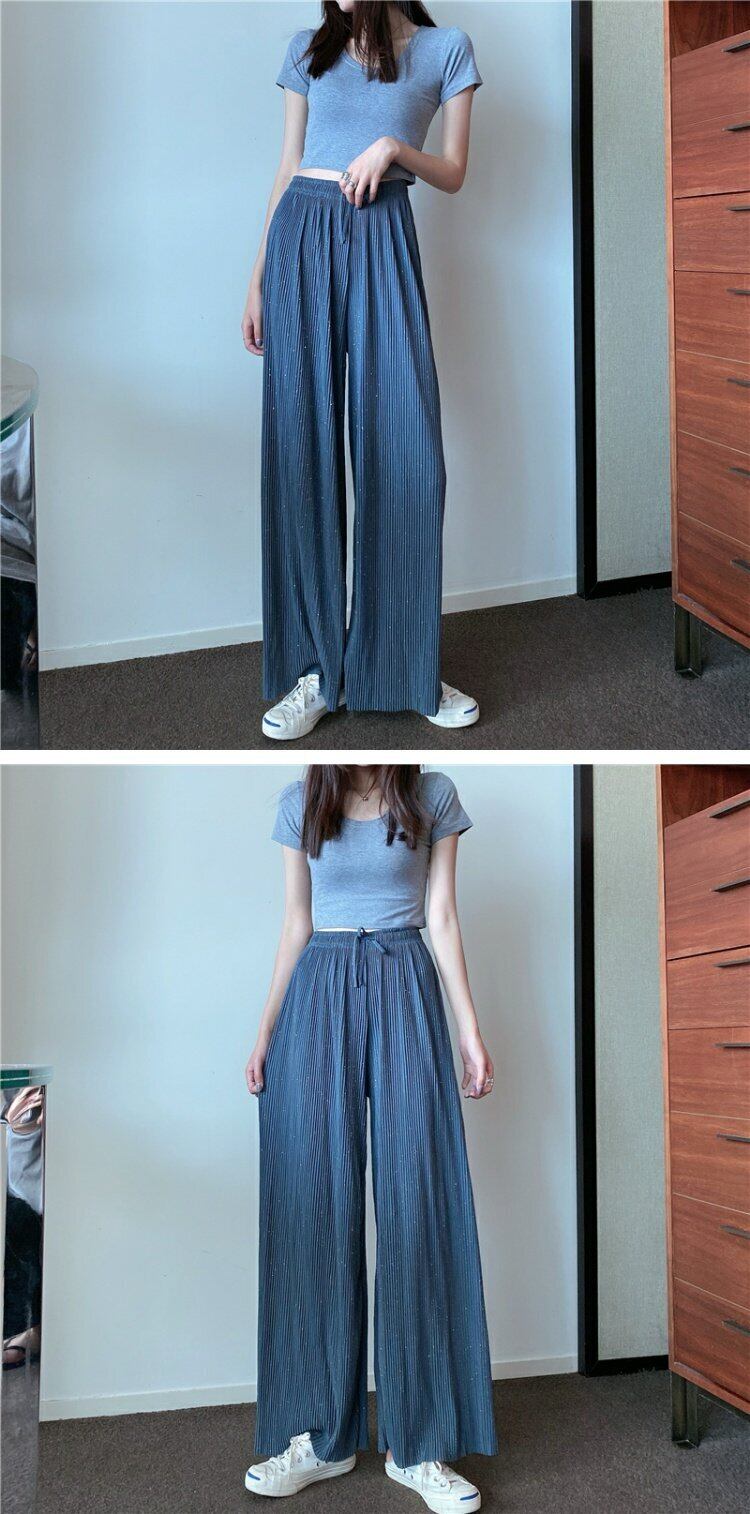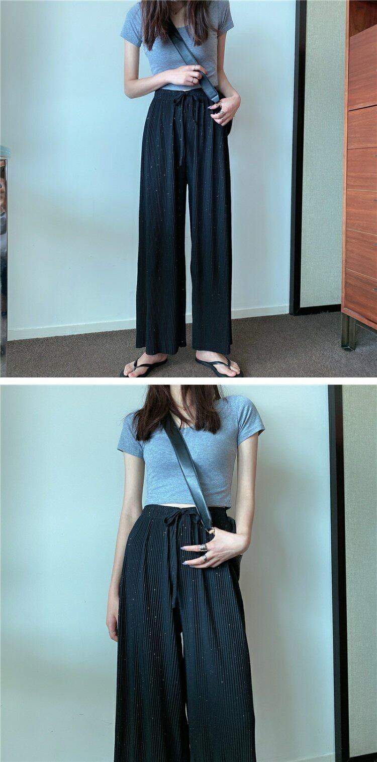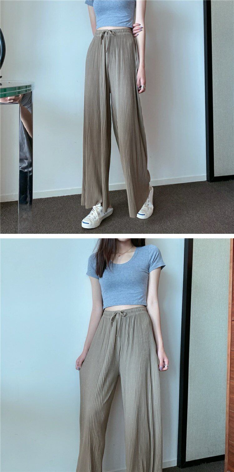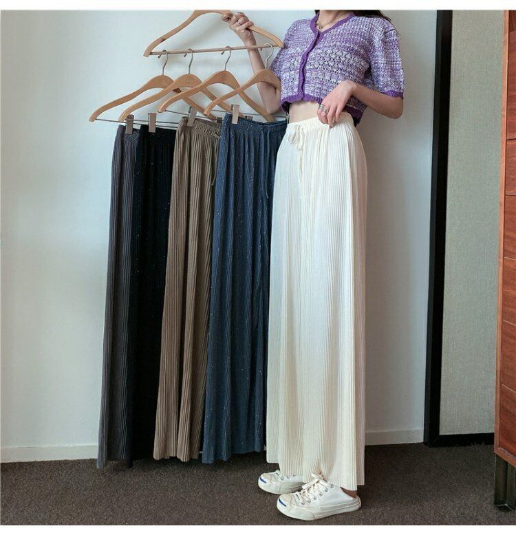 パンツ レディーススプリング秋物夏服シフォンプリーツルーズ薄手ホワイト 春物 夏物 オータム シルク コーデ marchs6718332774063