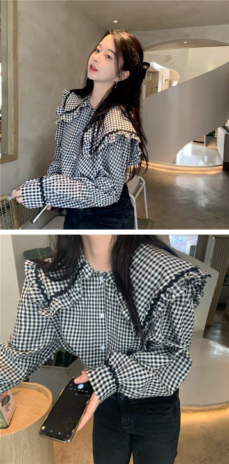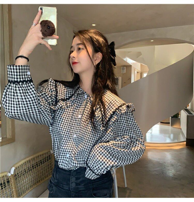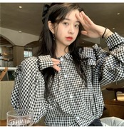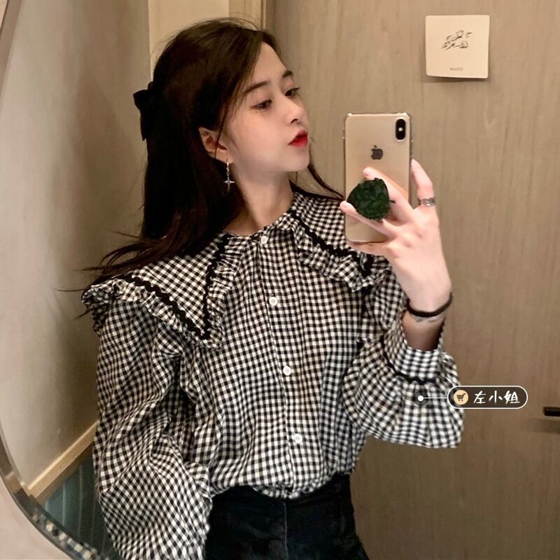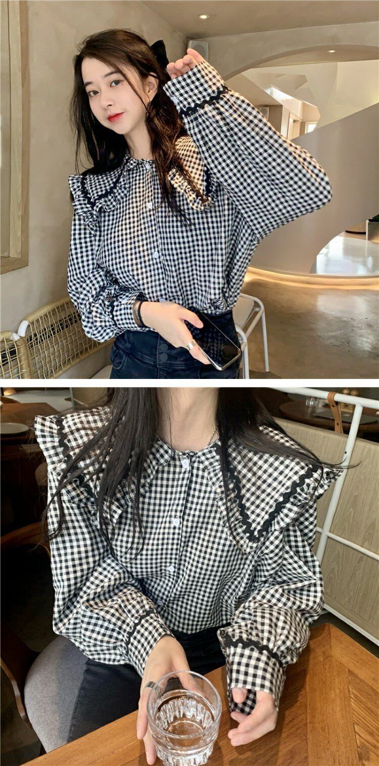 スタンダード格子柄カラーシャツ スプリングスリーブ レトロ 春物 コーデ marchs6760385619987