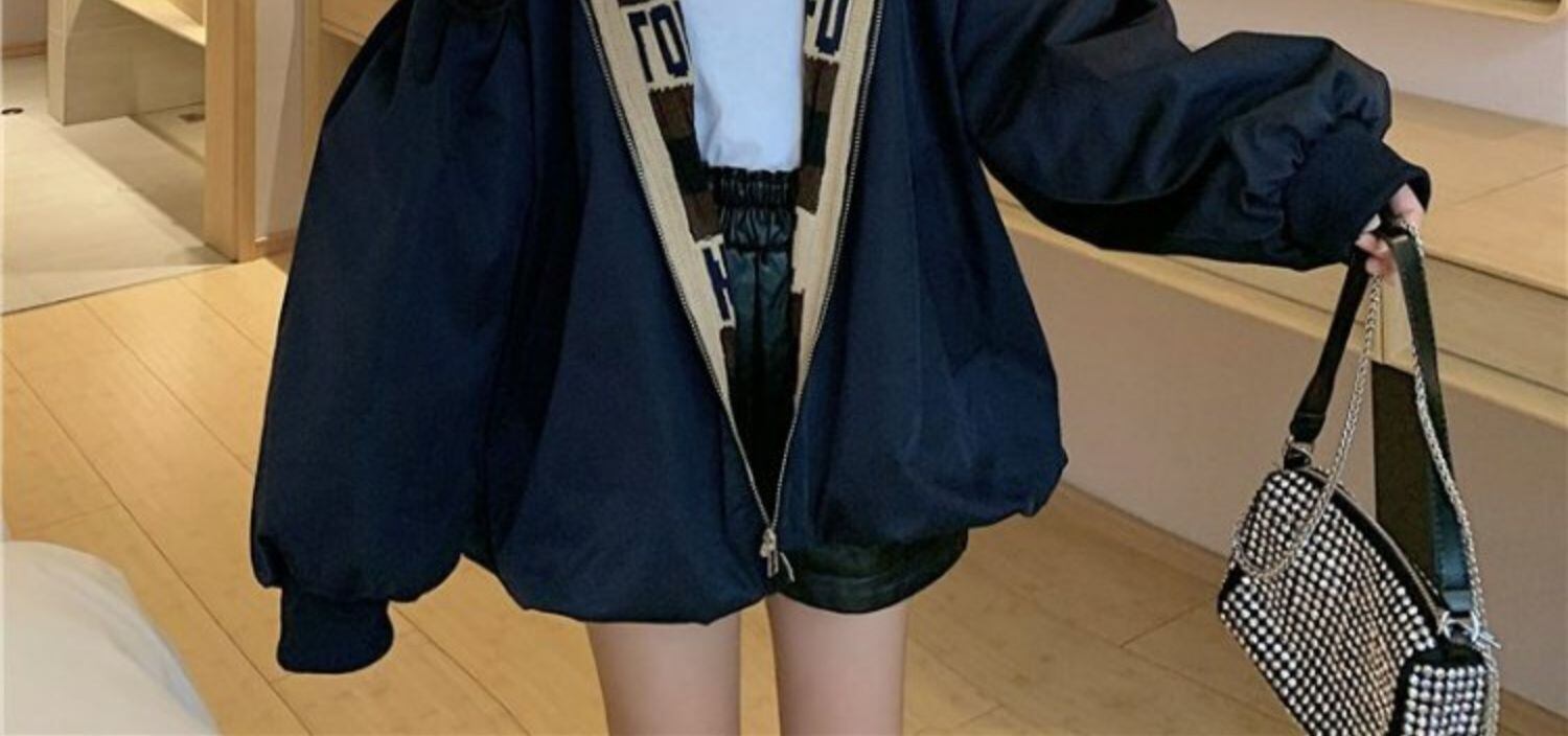 ジャケット レディーススプリング秋物韓国ファッションルーズネイビーカラーショールカジュアルトップス トレンド 春物 オータム スタイル コーデ marchs679086253193