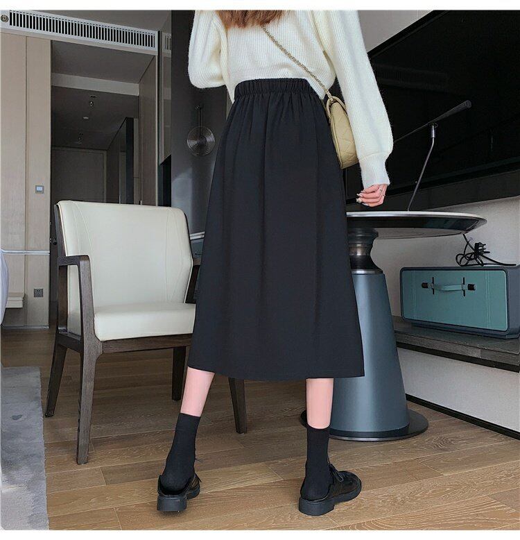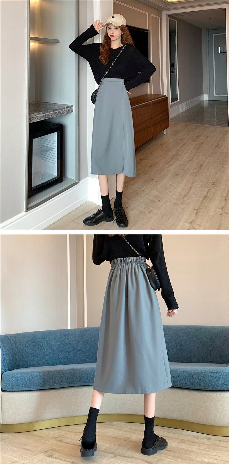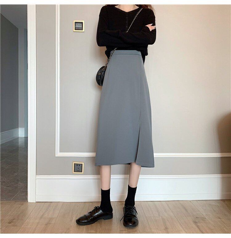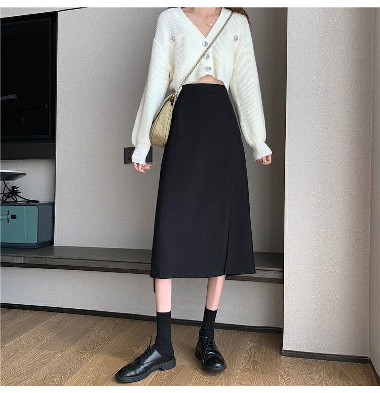 夏服韓国ファッションハイウェスト薄手サイドスリットスカート レディースAライン 夏物 スタイル ウエスト ミドル丈 コーデ marchs6732144033860