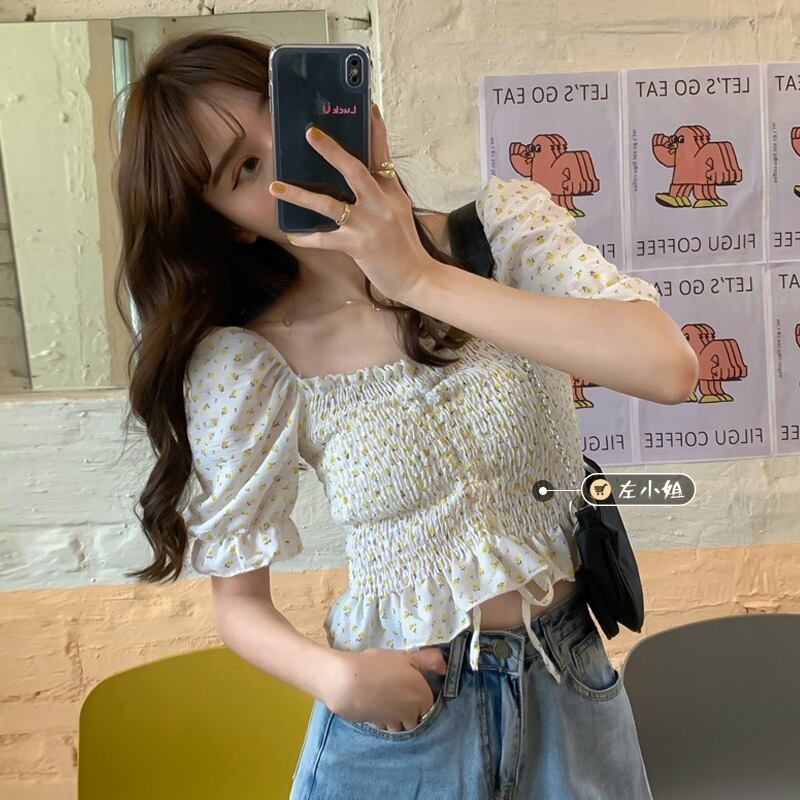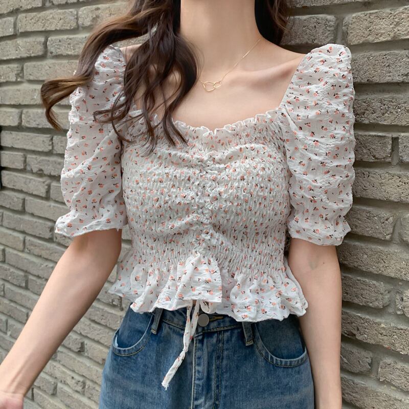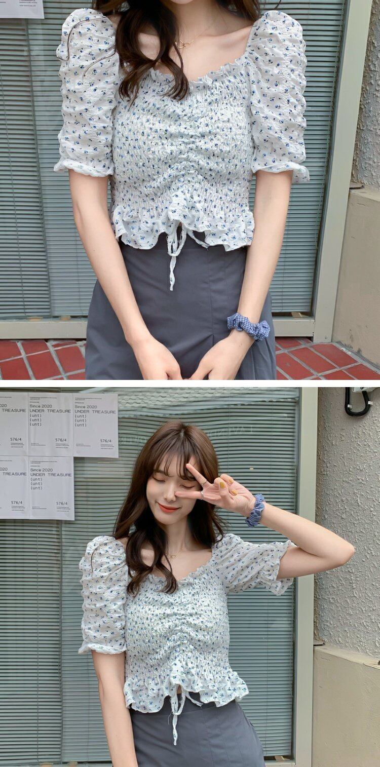 夏服フローラルギャザーブラウス カラーシャツ レディース 大人ガーリー スウィート キュート カジュアル 夏物 花柄 スクウェア コーデ marchs6763332560331