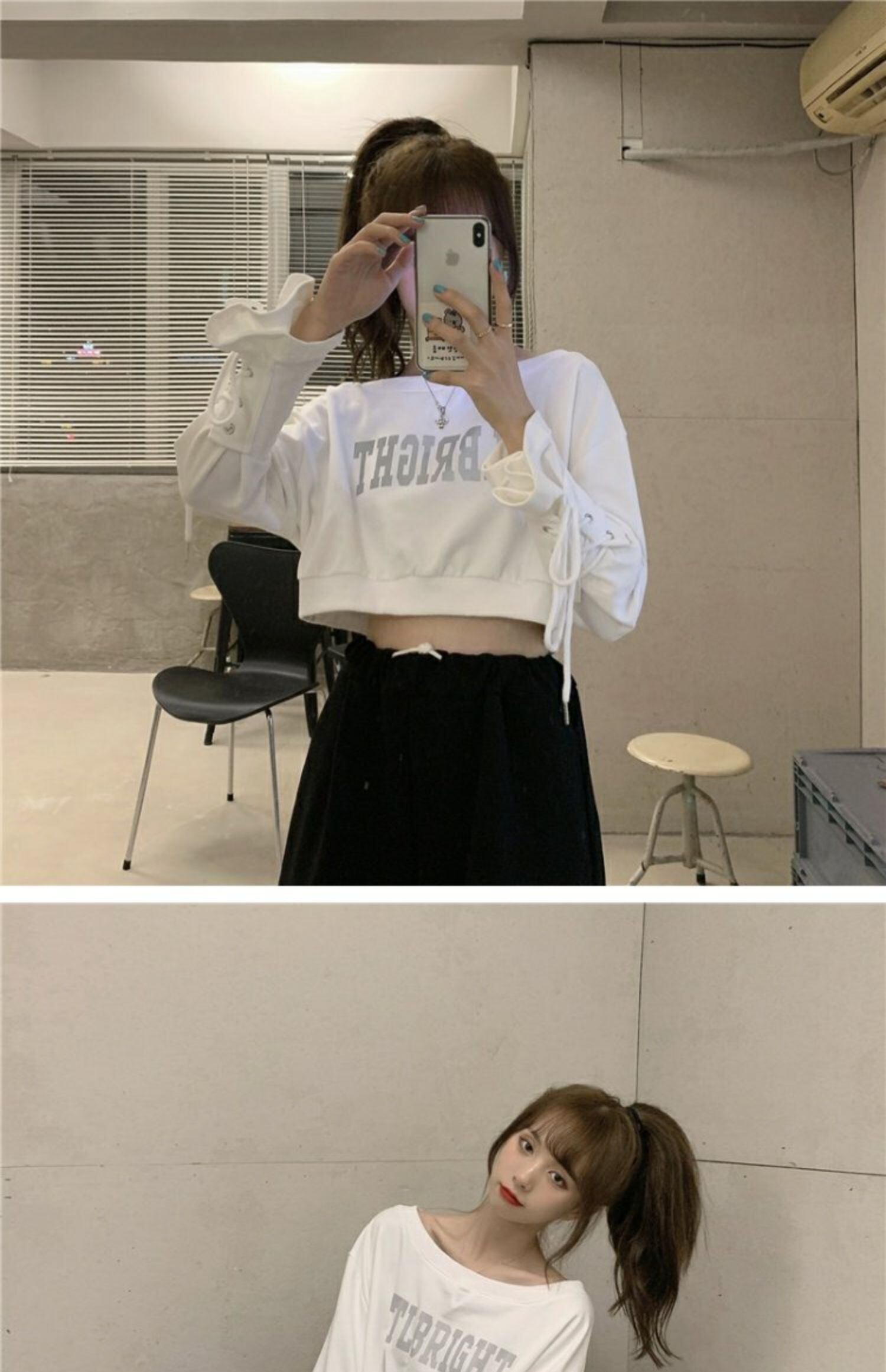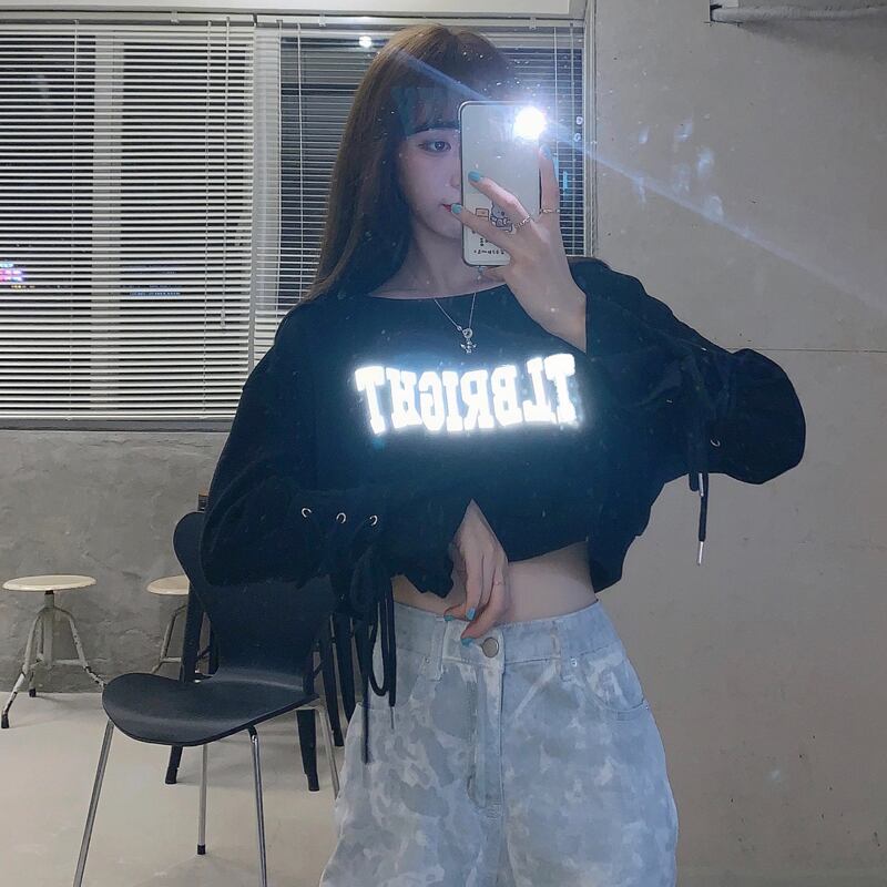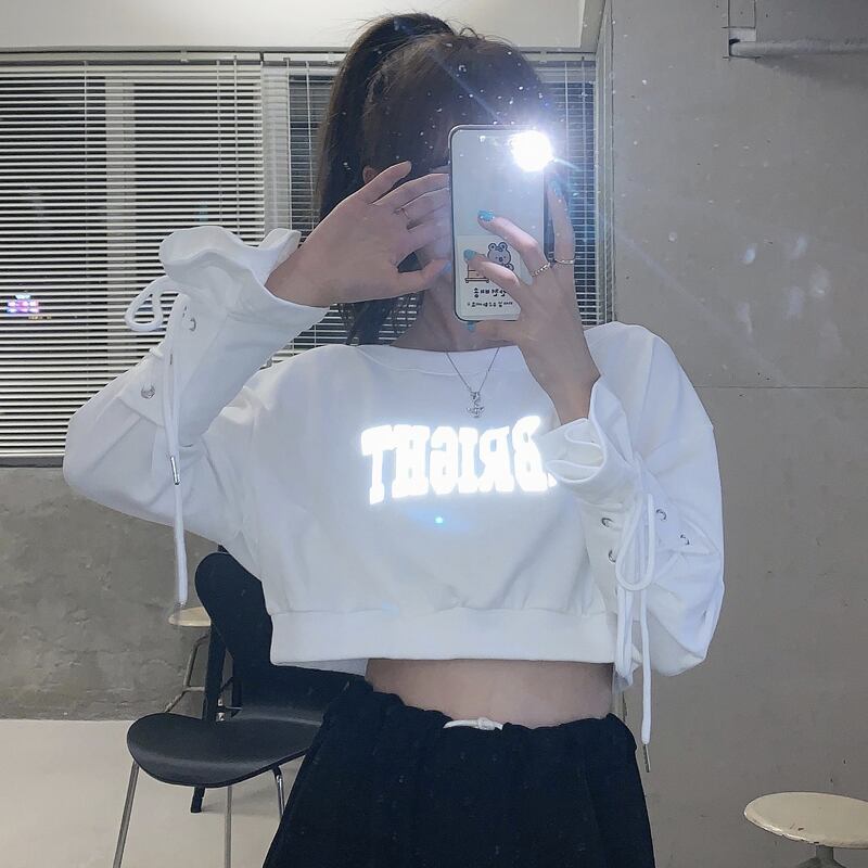 スプリングプリント柄ショートスタイルバンド長袖スリーブスウェット トップス ロング 春物 コーデ marchs6719953708484