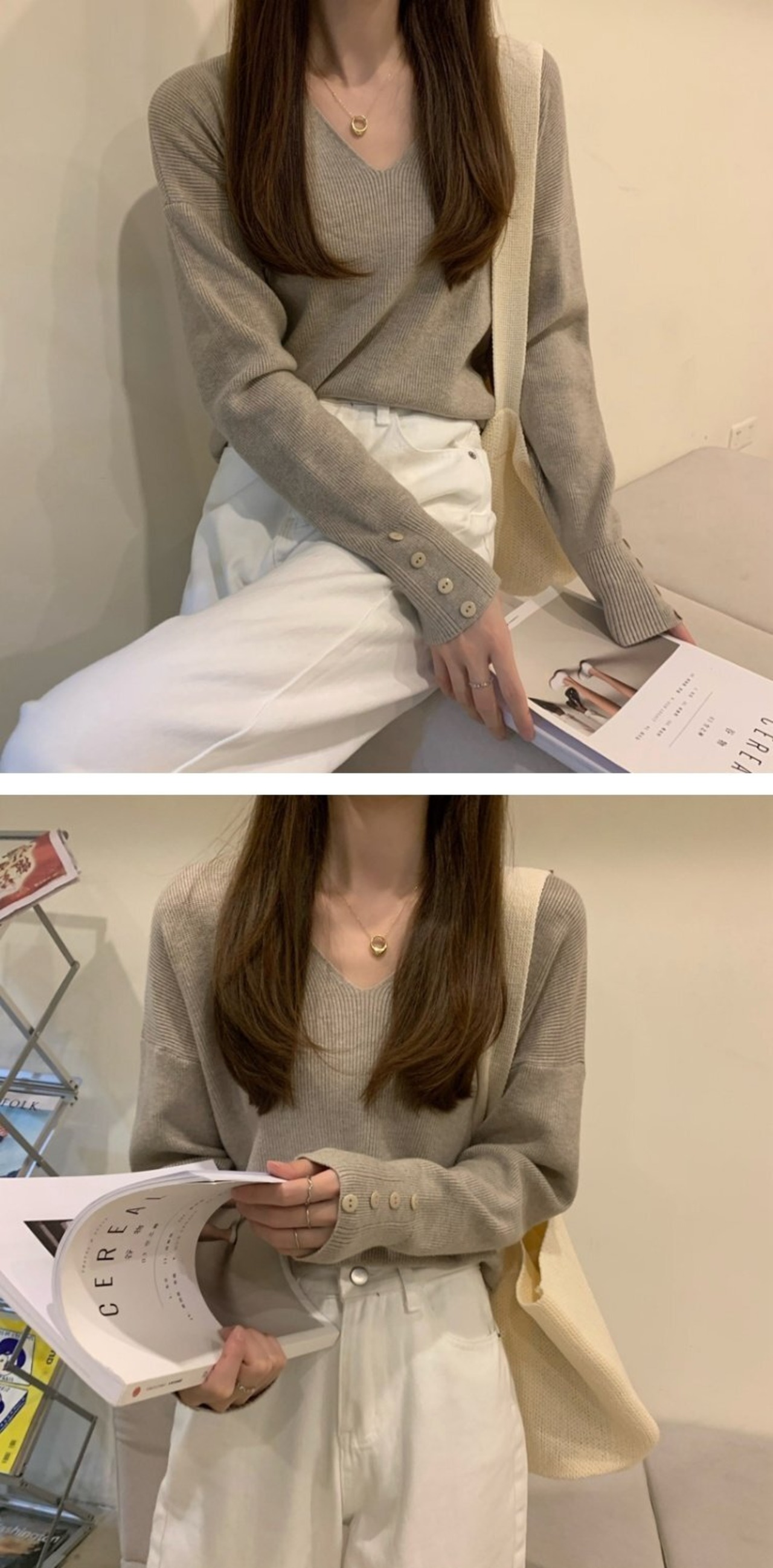 スプリングルーズVネックセーター トップス レディース ロング 春物 長袖 コーデ marchs6746543872865