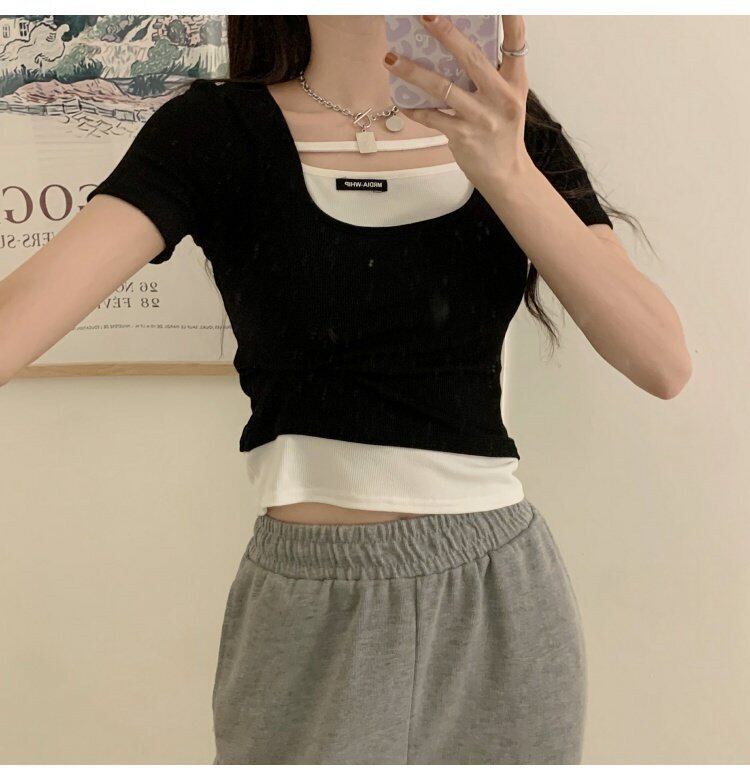 Tシャツシャツ レディース夏服韓国ファッションショートゆったり 半袖 ハーフスリーブ 夏物 ステッチ スタイル コーデ marchs6722742730338