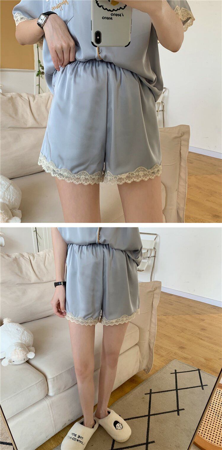 夏服薄手サテンレースショーツ レディース 大人ガーリー スウィート キュート カジュアル 夏物 シルク コーデ marchs6782185950855