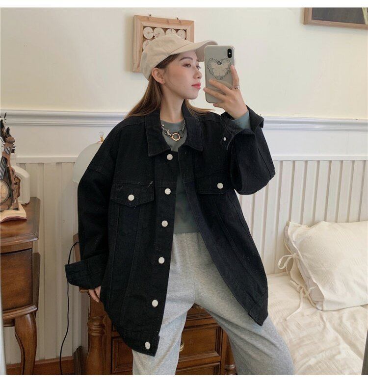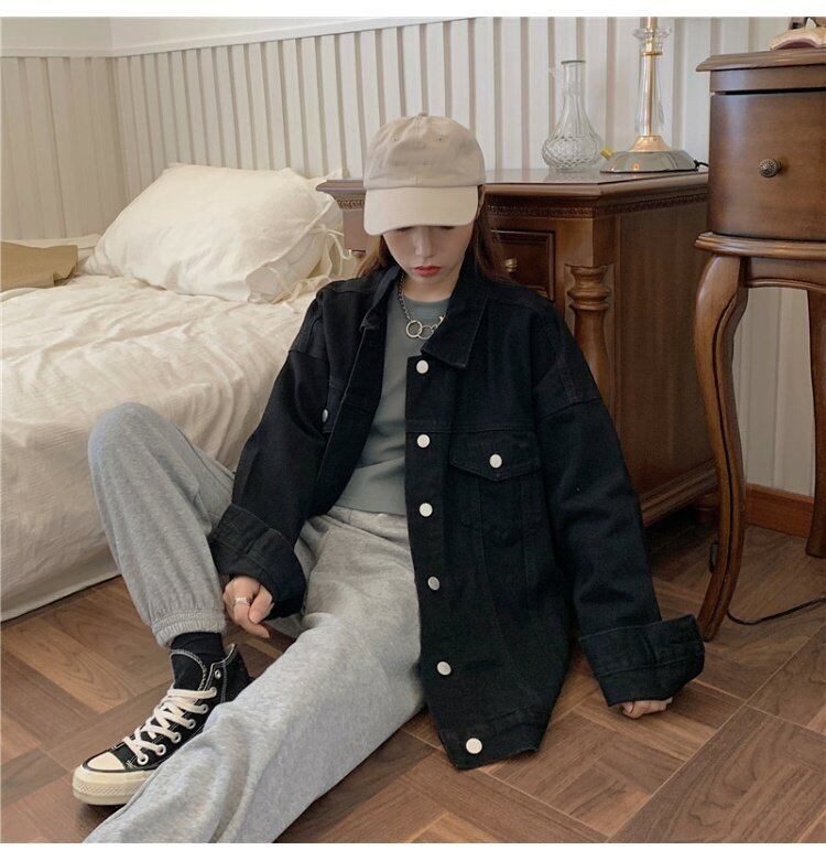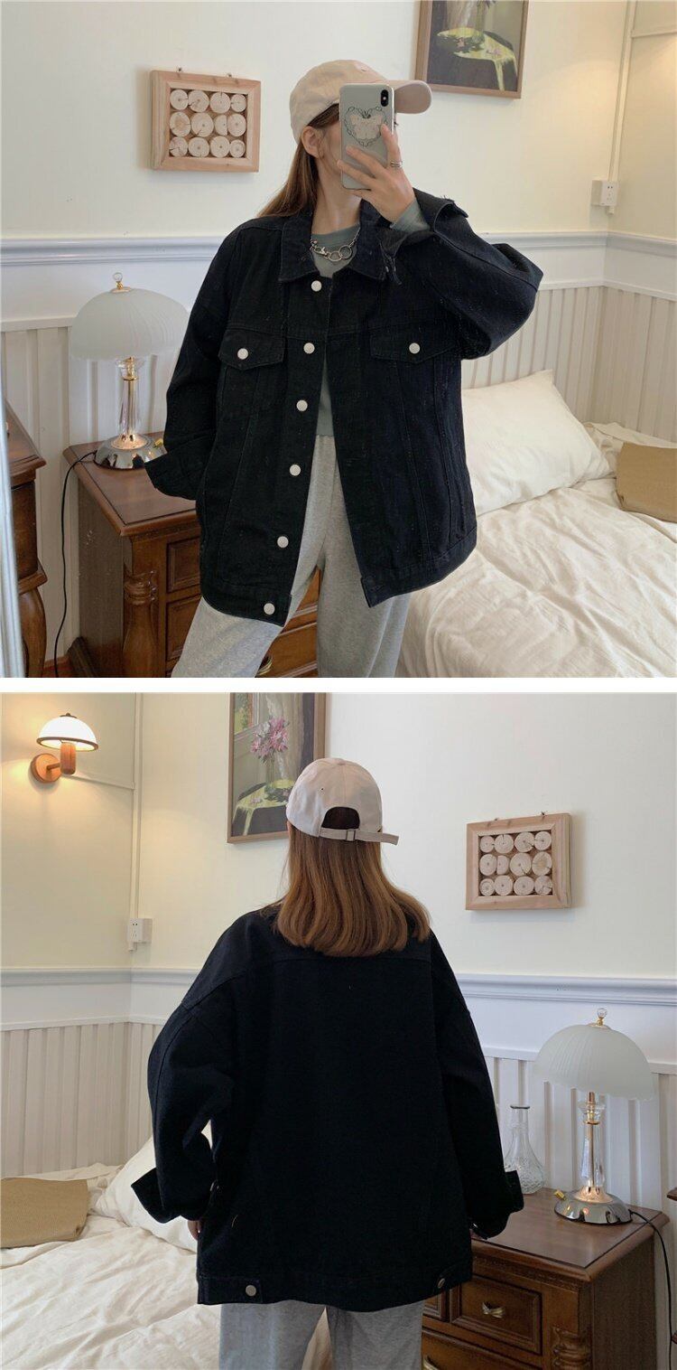 スプリング韓国ファッションルーズオーバーサイズブラックジャケット レディース 春物 ボーイズ スタイル ミドル丈 コーデ marchs6716632002151