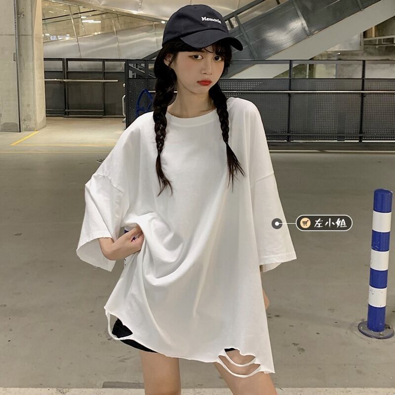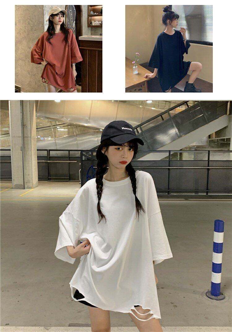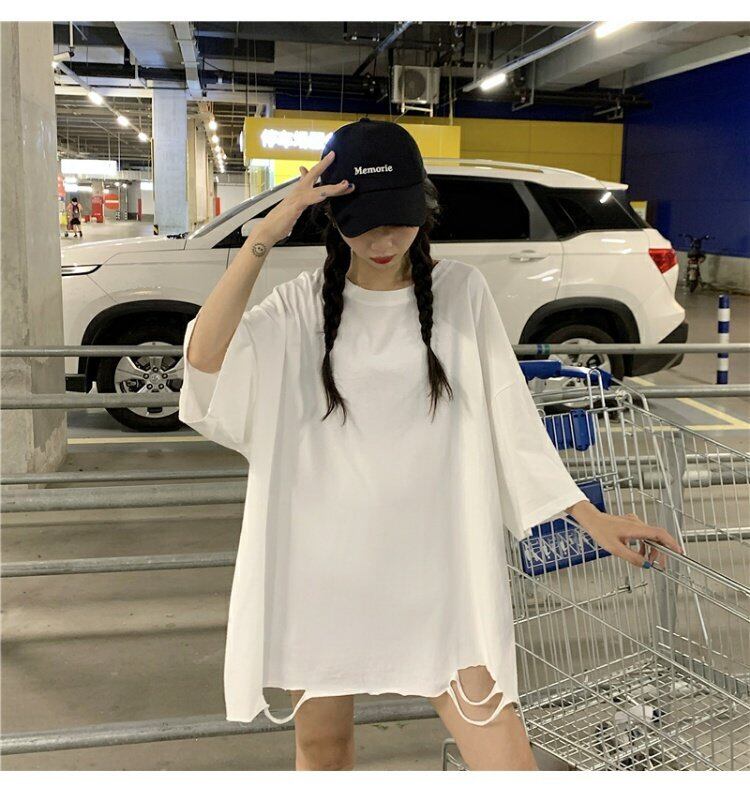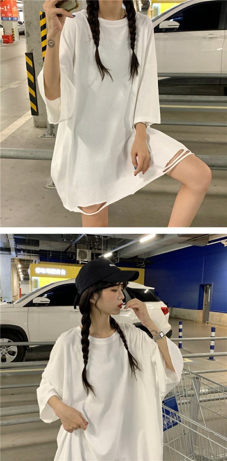 夏服ホワイトTシャツレディースルーズトップス 夏物 ミドル丈 コーデ marchs6765153832543