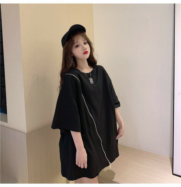 トップス 夏服ルーズスリットブラックTシャツレディース ストリート 夏物 ヨーロピアン ミドル丈 コーデ marchs6772101438812