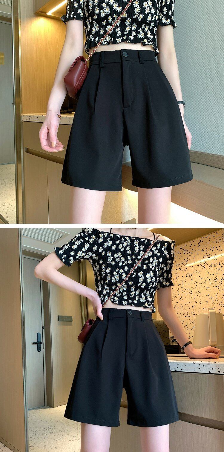 スプリング韓国ファッションカジュアルブラックショーツ 薄手パンツ レディース 春物 コーデ marchs6768283437794
