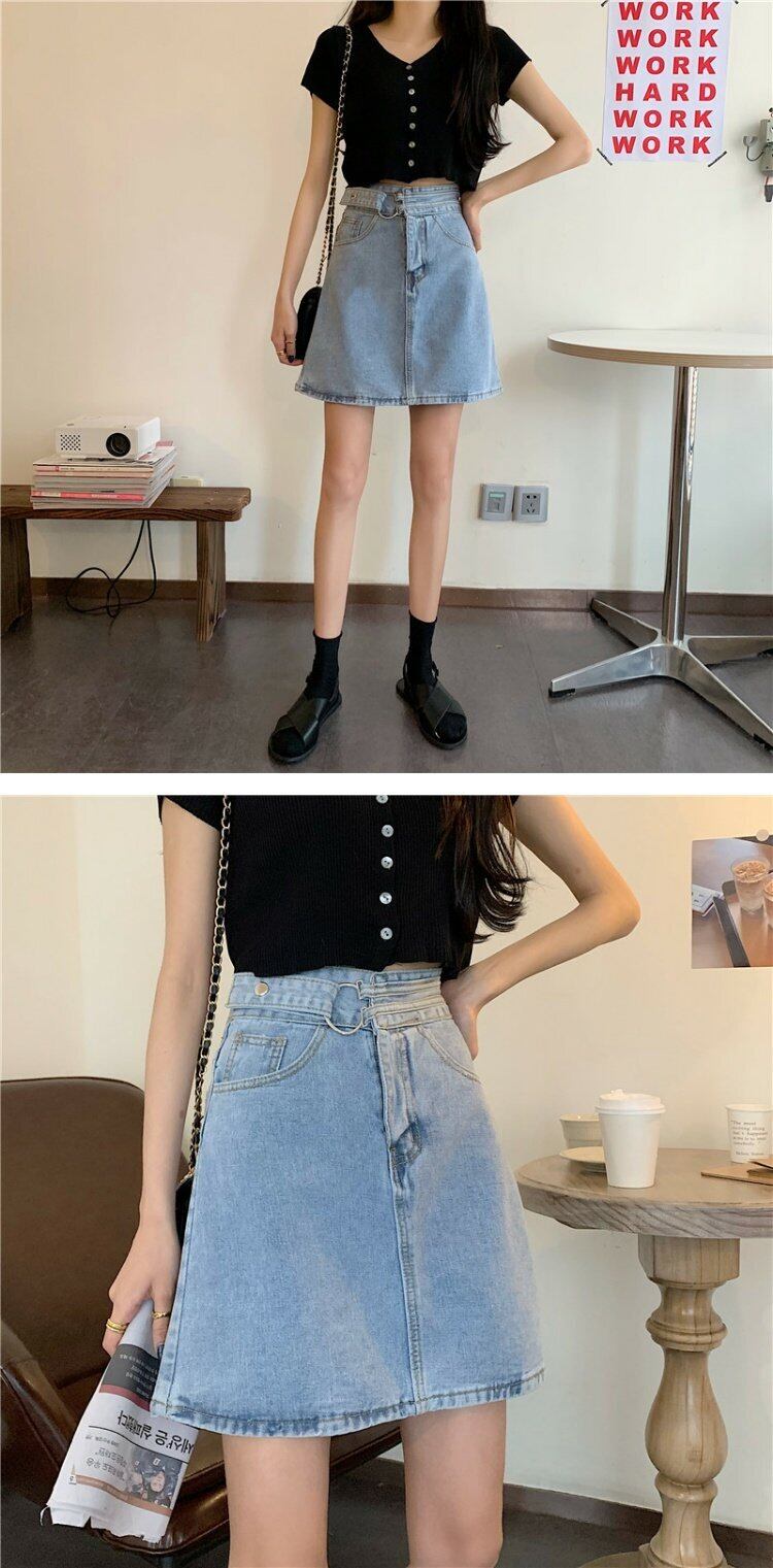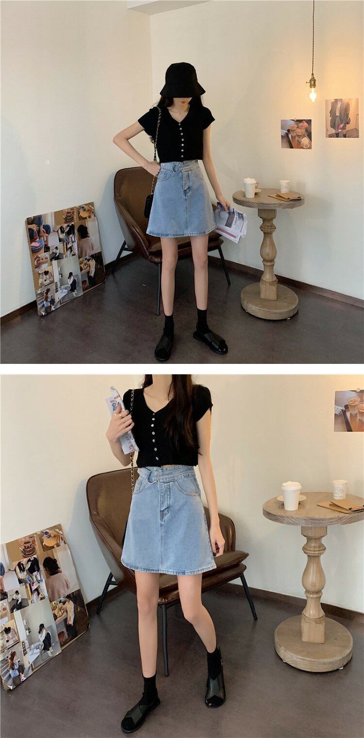 スカート レディース夏服スタイルスタンダードハイウェストウェストショートAライン レトロ 夏物 ウエスト コーデ marchs6716897968300
