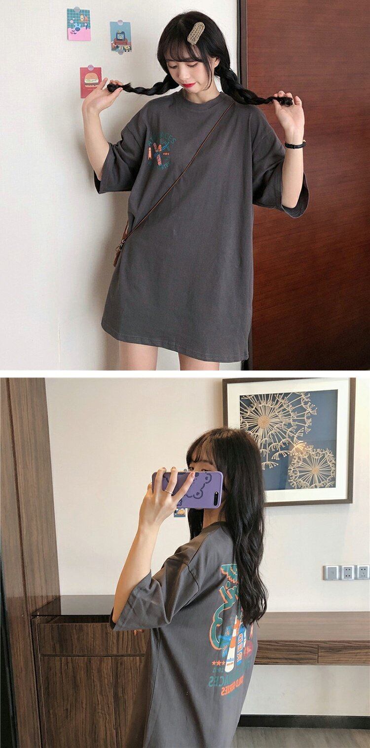 グレーTシャツレディース夏服韓国ファッションスタイルルーズトップス 夏物 ミドル丈 コーデ marchs679423918297