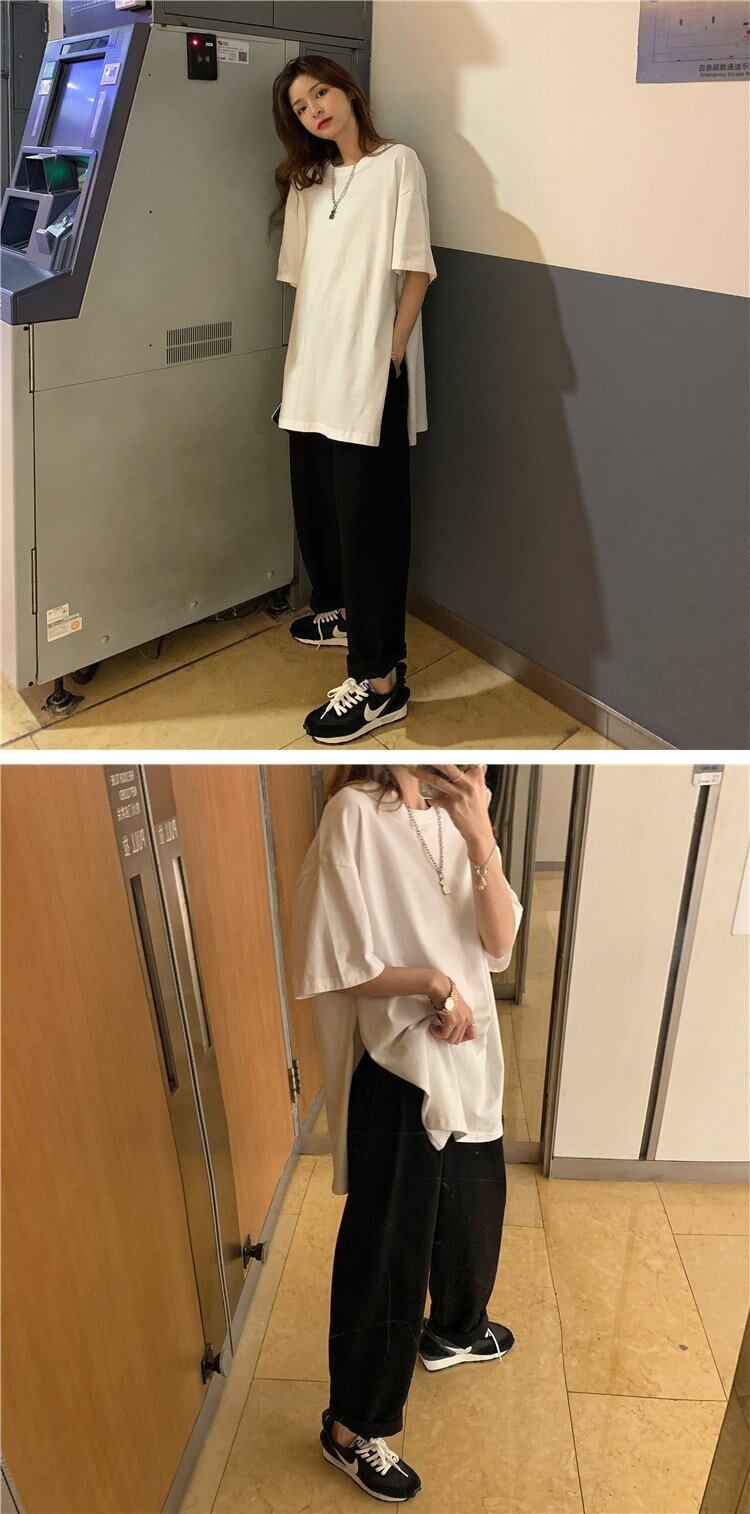 Tシャツレディーススプリング夏服ロングホワイトルーズトップス 大きめサイズ 春物 夏物 ピュア コーデ marchs6798798667753