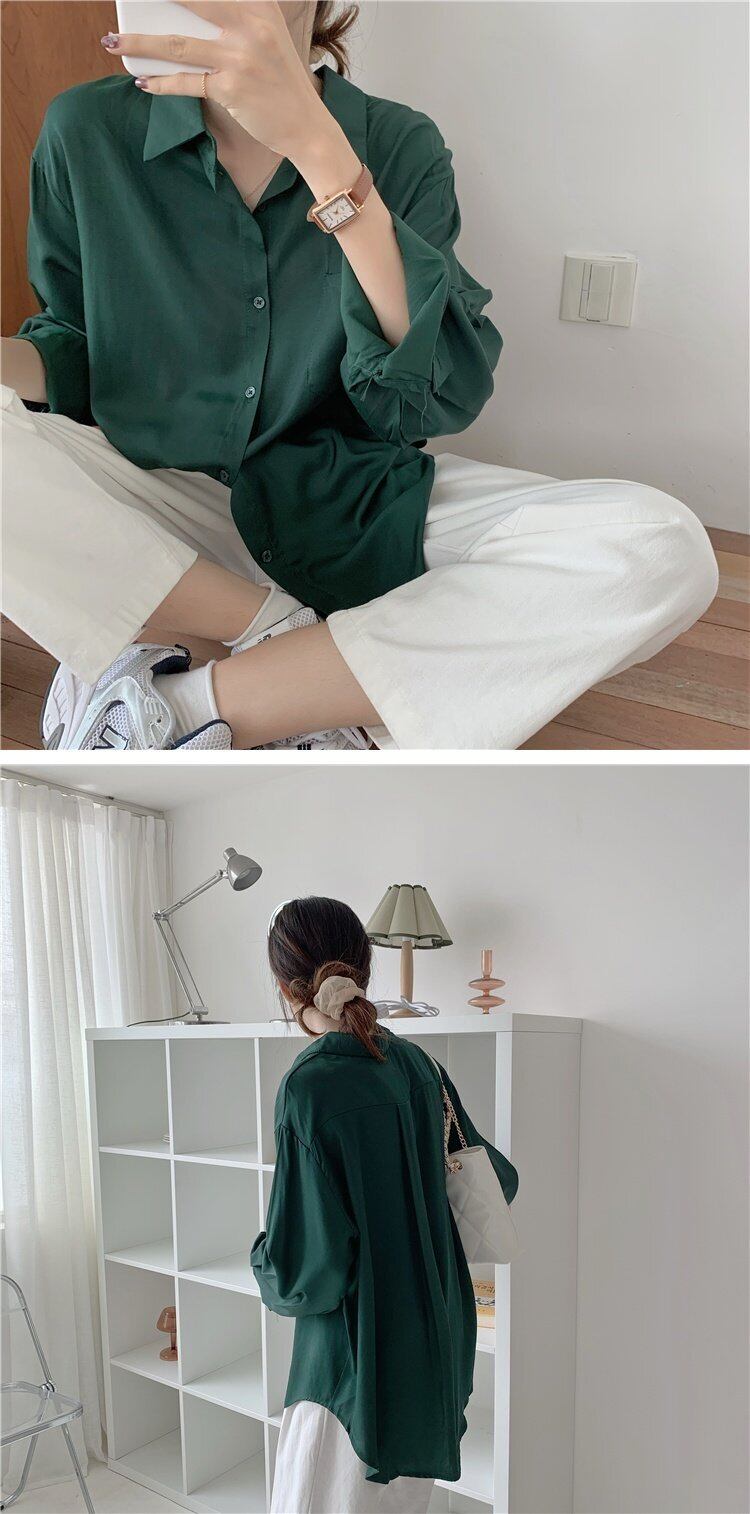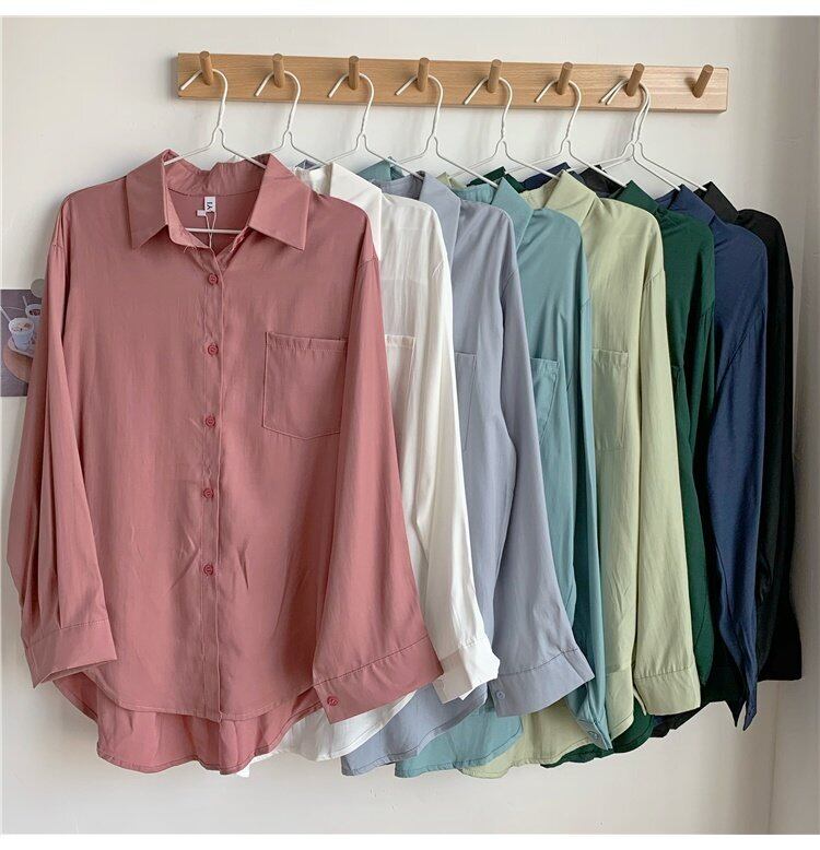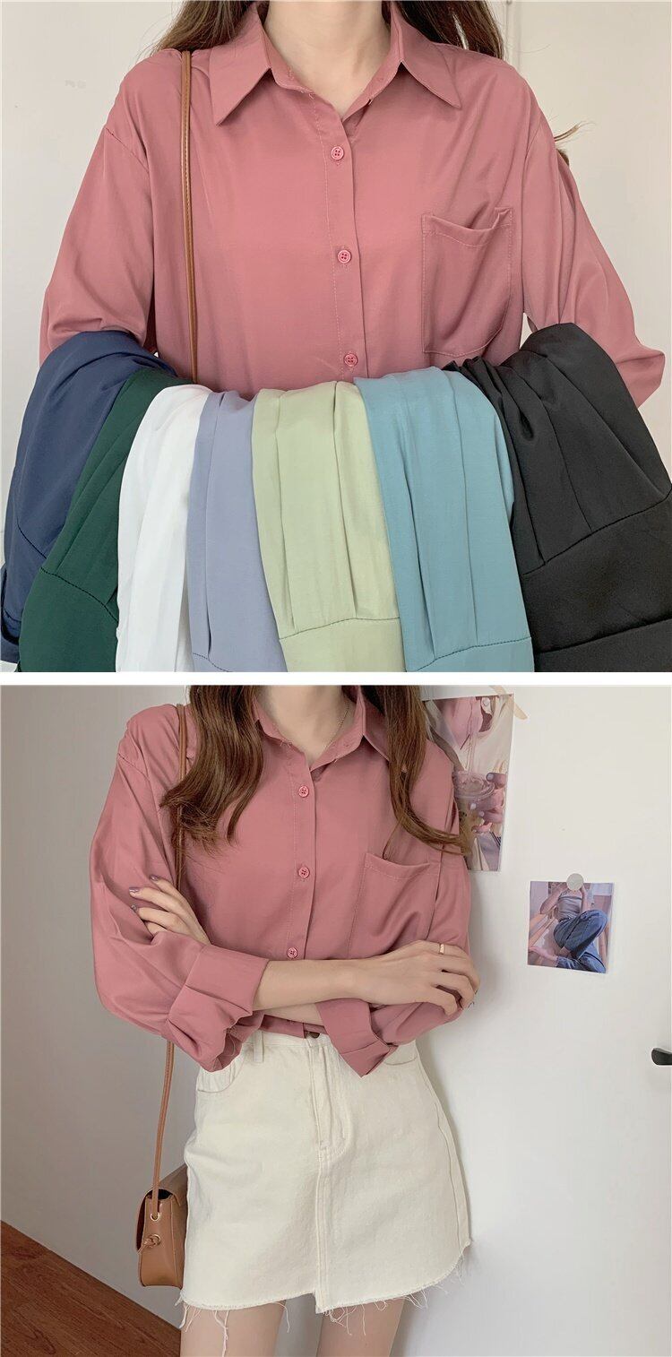 シャツ スプリング韓国ファッションルーズジャケット スタイルロング ピンク 長袖 春物 コーデ marchs6726951664988
