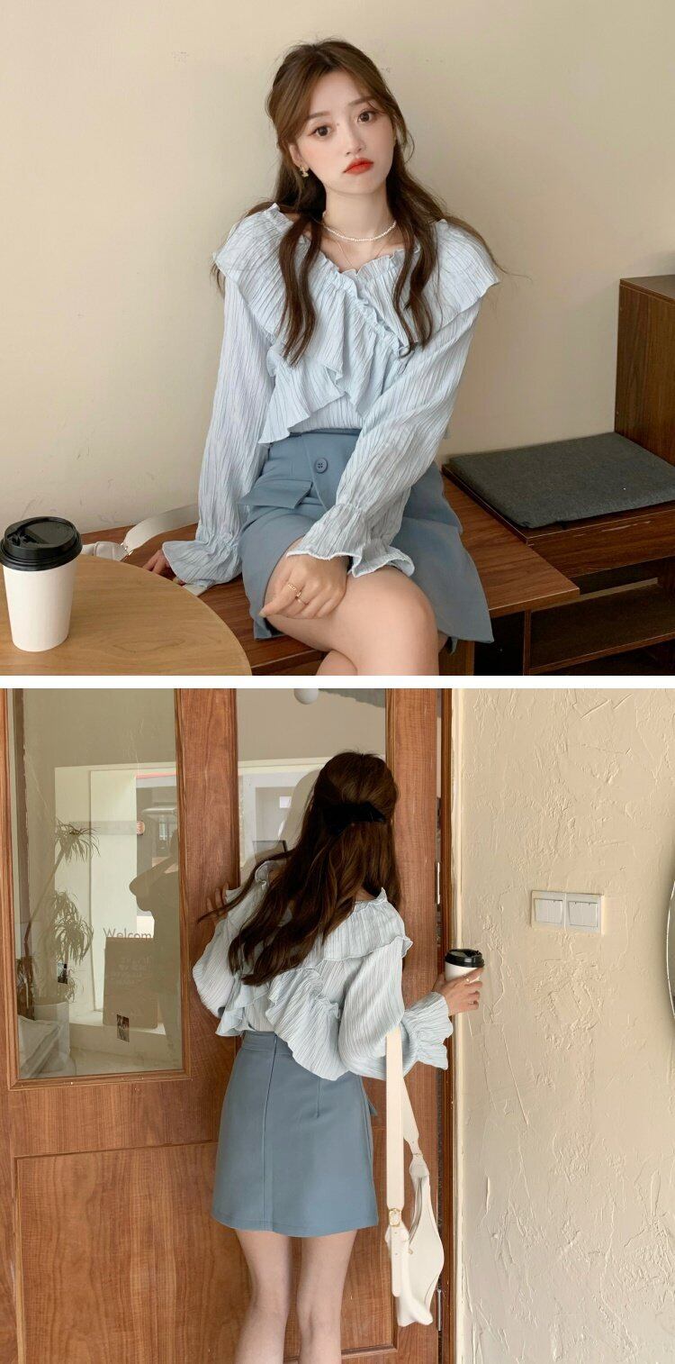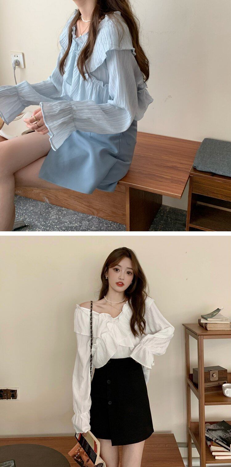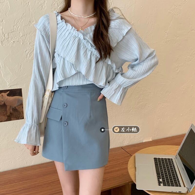 レディースブルースプリング 大人ガーリー スウィート キュート カジュアル 春物 Vネック コーデ marchs6787724277988