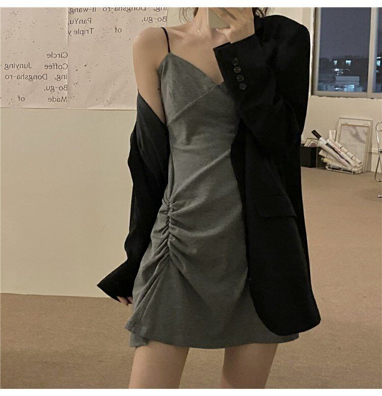 夏服スタイルVネックソリッド カラースカート スリムAライングレーワンピースレディース 夏物 ソリッドカラー コーデ marchs6797783742145