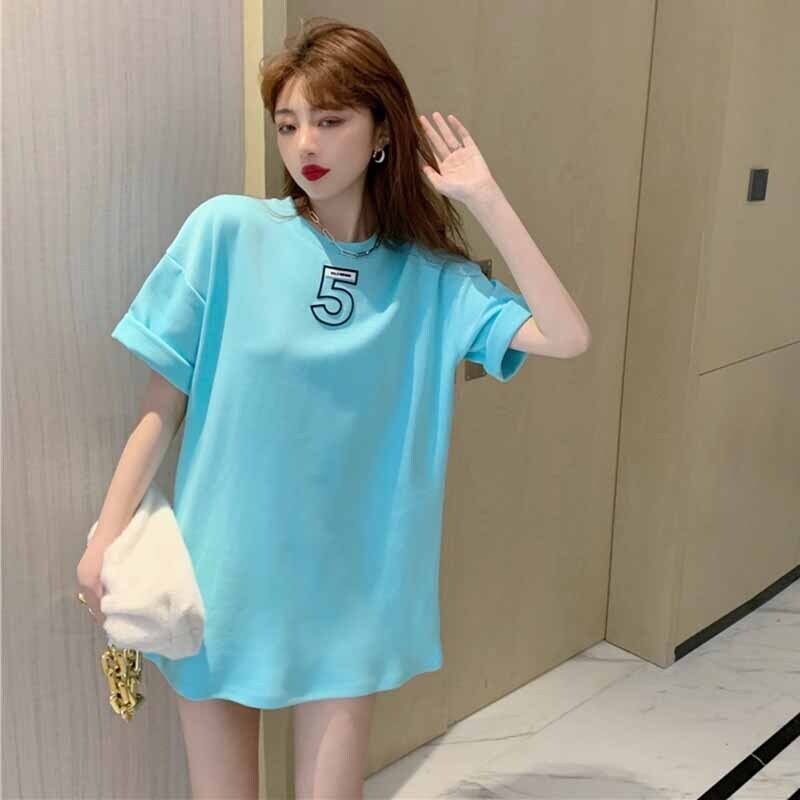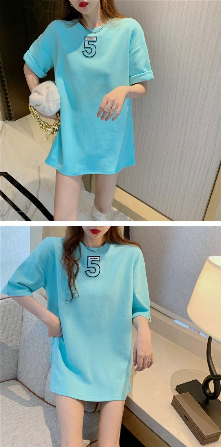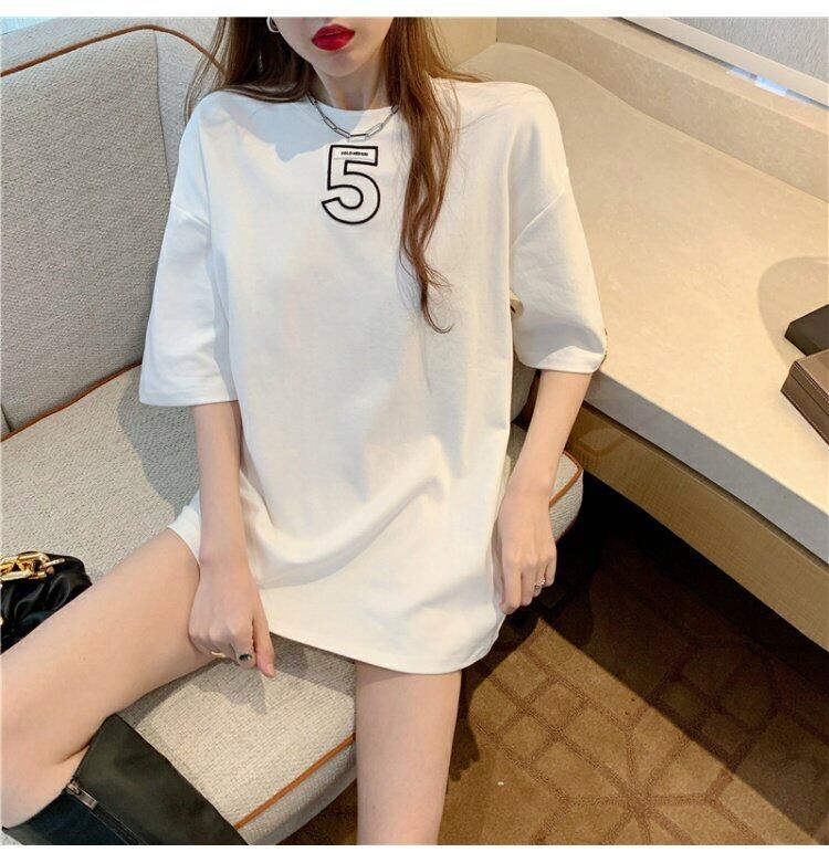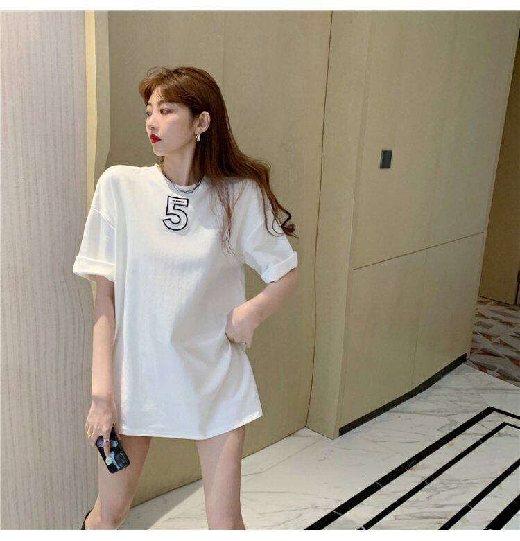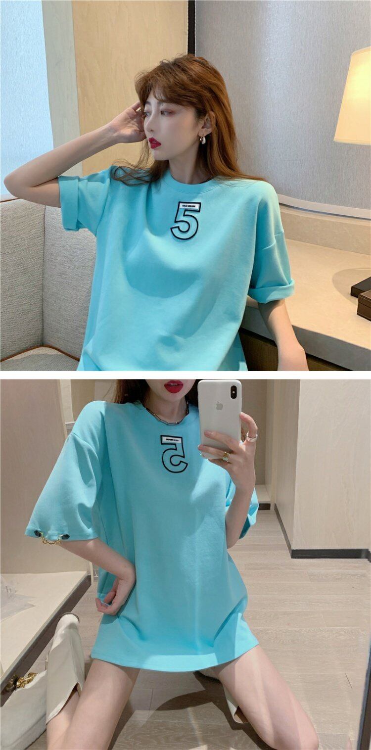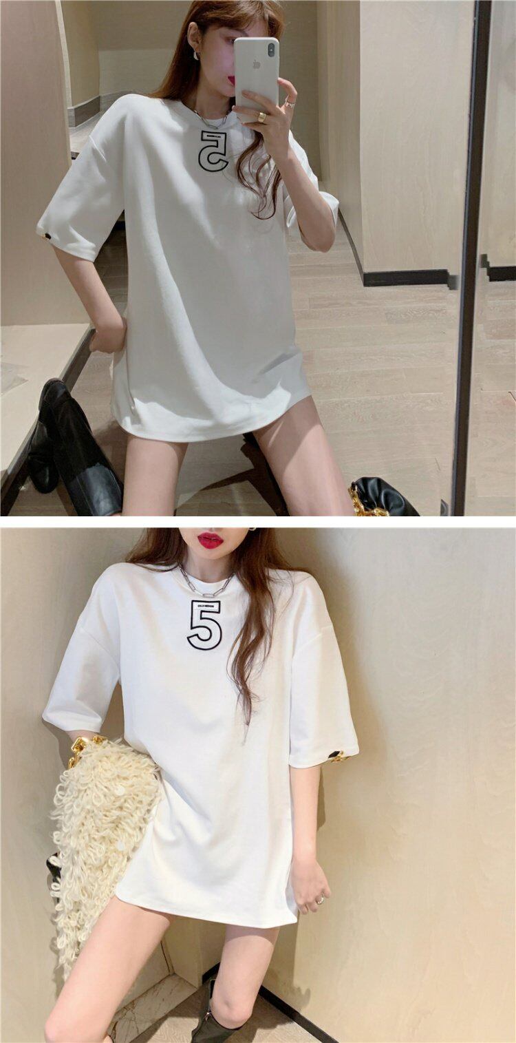 スタイルロングTシャツシャツ レディース夏服ルーズゆったりトップス レッド 刺繍 夏物 コーデ marchs6789833920832