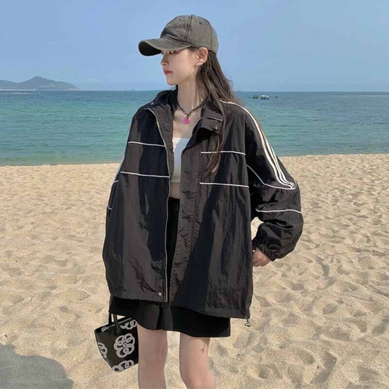 薄手レディース夏服韓国ファッションルーズカジュアルホワイトジャケット スプリング 春物 夏物 コーデ marchs6784086429641