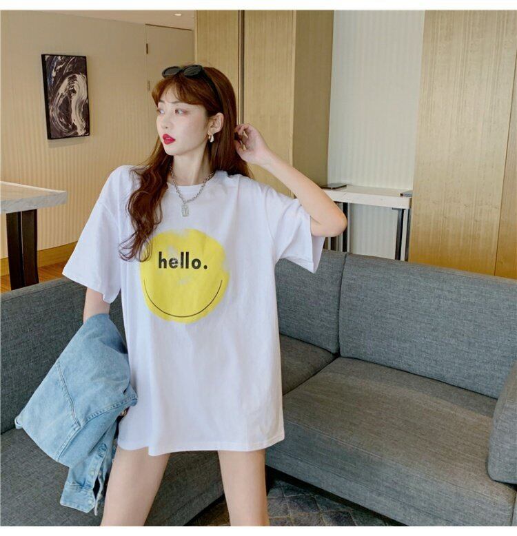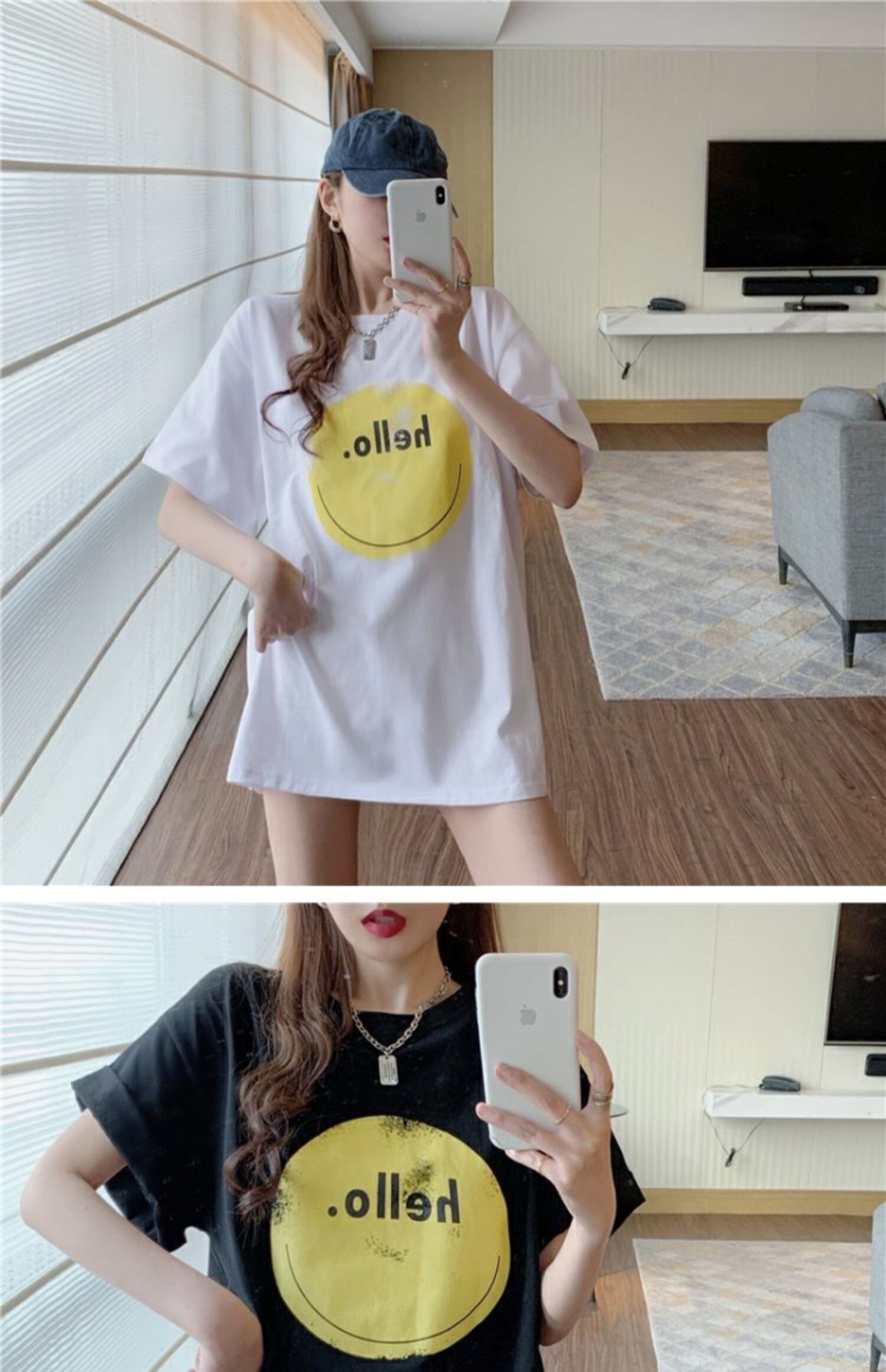 スタイルプリントTシャツレディース夏服韓国ファッションルーズラウンドネックトップス 夏物 Oネック ミドル丈 コーデ marchs6750900477411