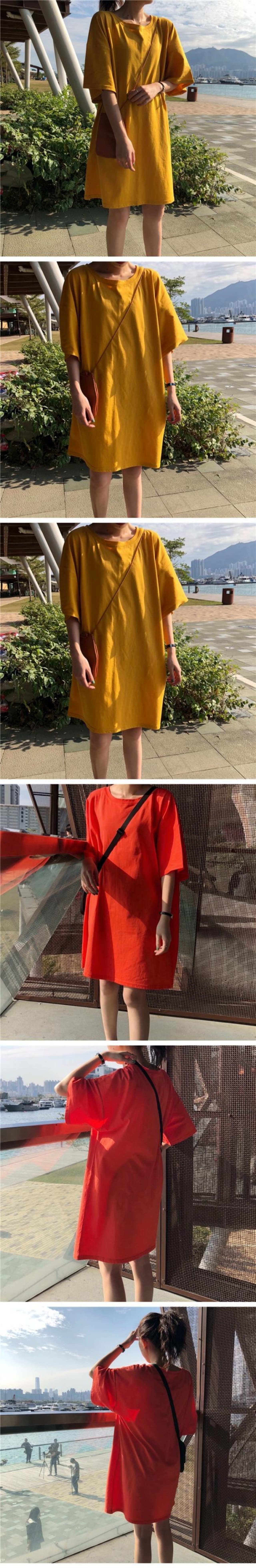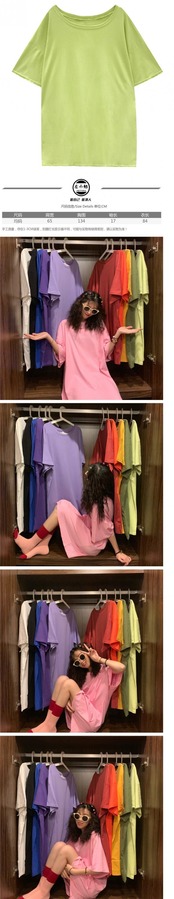 スプリング夏服韓国ファッションルーズソリッド カラーTシャツレディーストレンドトップス 春物 夏物 ソリッドカラー ミドル丈 コーデ marchs6727109299844