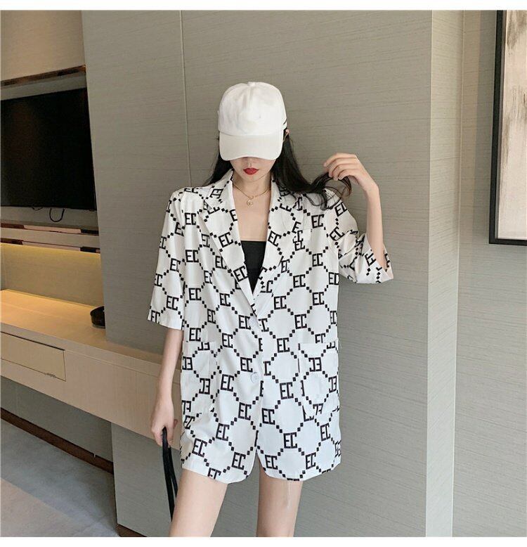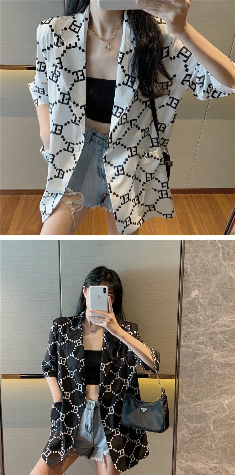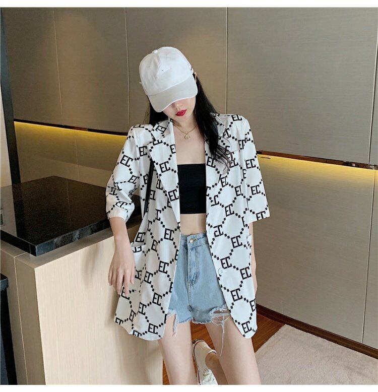 スタイルプリントジャケット 夏服韓国ファッションルーズ薄手トップス ストリート 夏物 ミドル丈 コーデ marchs6726635650872