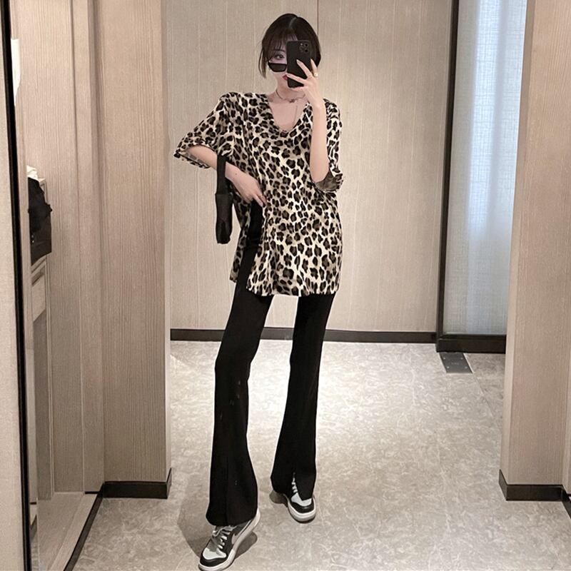 レオパードプリント柄Tシャツ夏服ルーズトップス 夏物 ミドル丈 コーデ marchs6750135767737