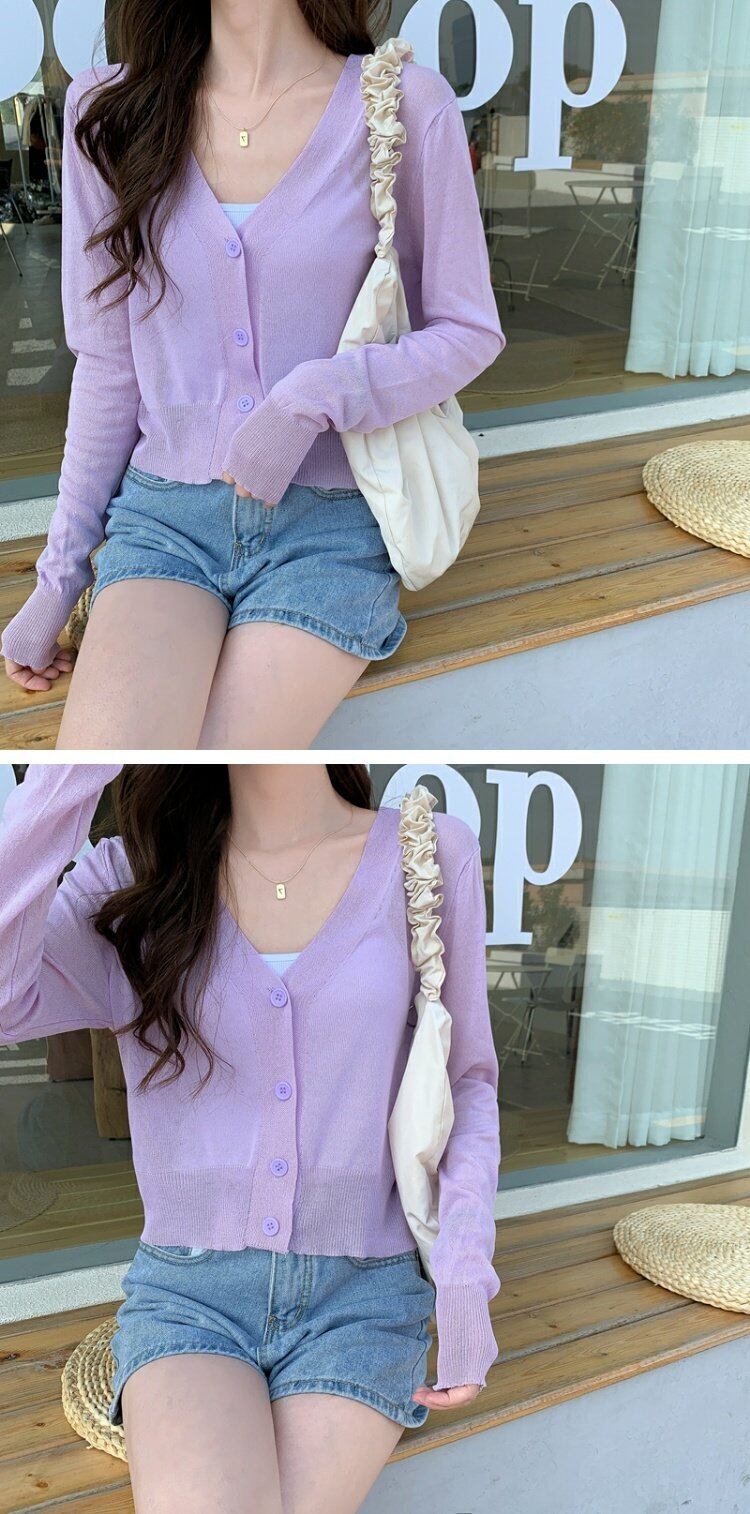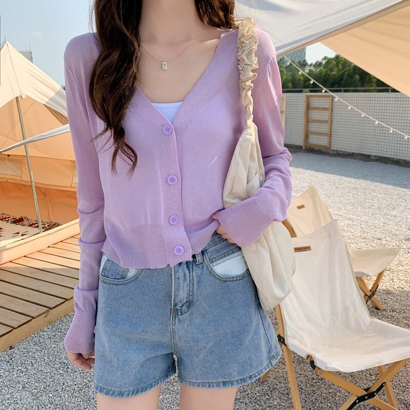 Vネック薄手ニットカーディガントップス 夏服ルーズショートセーター コート ロング 大人ガーリー スウィート キュート カジュアル 夏物 長袖 コーデ marchs6787346066614