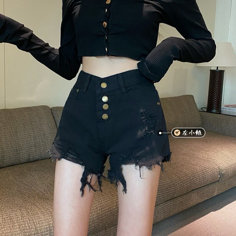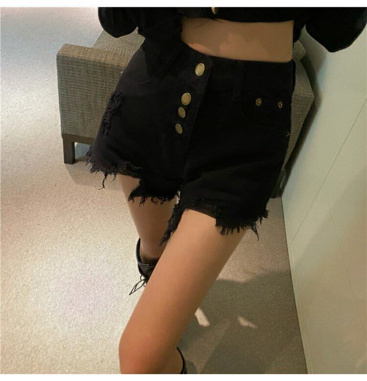 夏服ハイウェスト薄手ブラックパンツ ショーツ 夏物 ヨーロピアン ウエスト コーデ marchs6742135761953