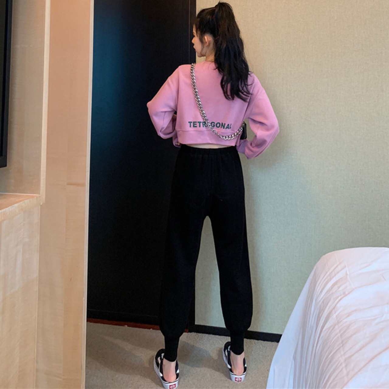 色:白いセーター,ピンクのセーター,青パンツ,黒いズボン