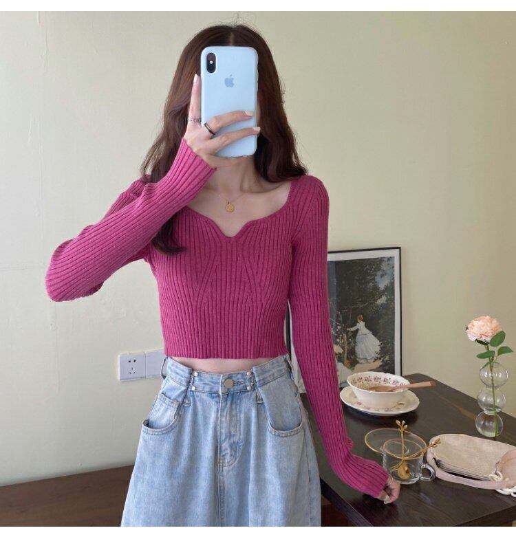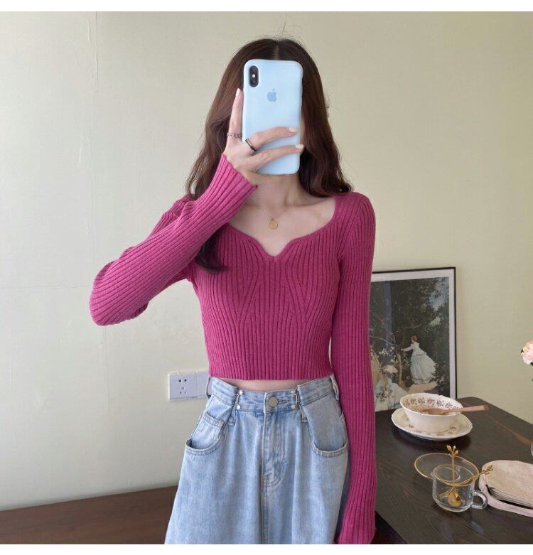 ニット スプリング秋物薄手ゆったりシャツ ウィンターハイウェスト韓国ファッションショートロングトップス 長袖 春物 オータム 冬物 スタイル ウエスト コーデ marchs6780942277604