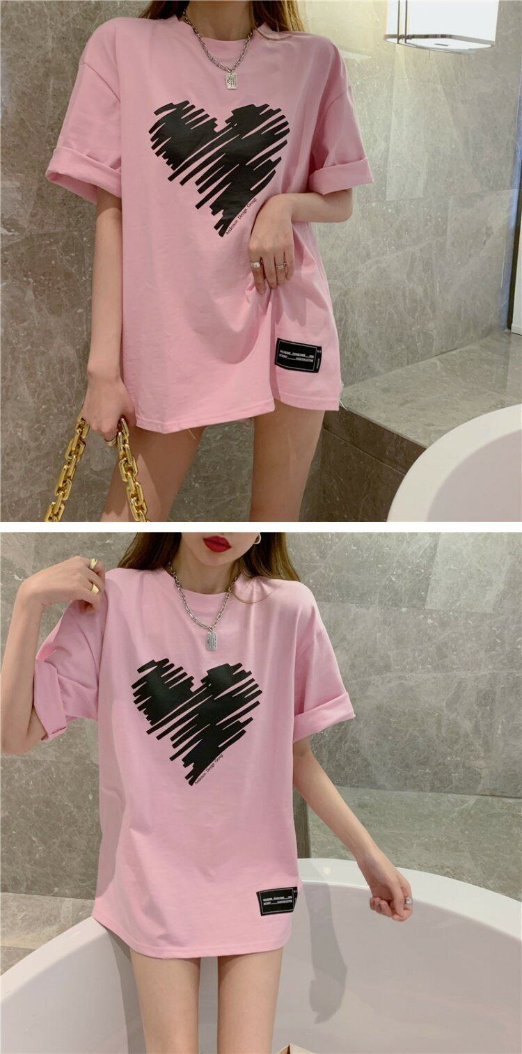 プリントTシャツレディーストレンド夏服スタイル韓国ファッションルーズカジュアルトップス 夏物 ミドル丈 コーデ marchs6755607050458
