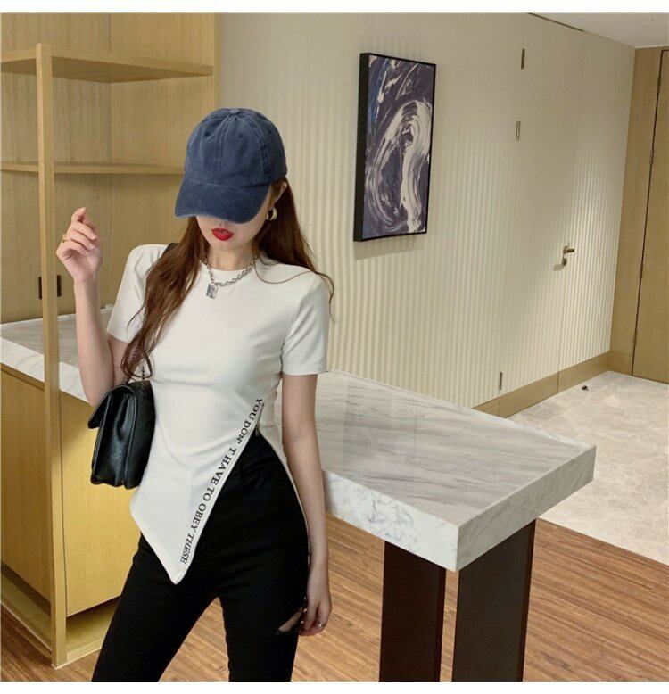 ラウンドネックTシャツレディース夏服韓国ファッション薄手ジッパートップス 夏物 Oネック スタイル コーデ marchs6743556841390